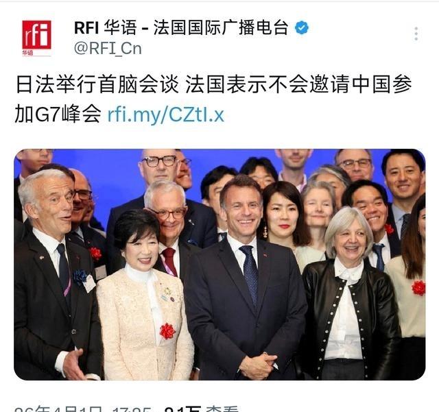 这下中国被“孤立”了,马克龙前脚刚踏到日本土地,后脚就把今年6月依云G7峰会的邀请名单定死了——中国不在受邀之列。法广4月1日报道的这个消息,看似只是会议名单的调整,实际上把法国自己搁进了一个挺尴尬的位置:日本怕中国来,法国就真的不让来了。 马克龙在2025年11月前后考虑邀请中国参加2026年6月在法国依云莱班举行的G7峰会。相关报道显示,这一想法在法国准备担任G7轮值主席国期间提出。马克龙访问中国时与中方讨论能源、贸易等议题,并传递扩大峰会参与范围的信号。法国方面指出,全球性问题需要更多经济体参与才能取得实际效果,作为东道主有权决定额外邀请对象。 日本方面从2025年底开始通过外交渠道表达关切。日本政府官员指出,如果中国参加,G7内部某些议题的协调可能面临调整。日本将自身视为G7在亚洲的代表,希望维持这一定位,避免影响力分散。日本安全和外交部门与法方进行多次沟通,外相在公开场合强调G7的性质,涉及成员间共享的协调基础。这一反对立场在马克龙访华前后持续显现。 2026年4月1日,马克龙抵达日本进行访问。日法首脑会谈期间,双方讨论双边关系和国际议题。法国方面明确表示不会邀请中国出席6月15日至17日在依云莱班举行的G7峰会。最终邀请名单包括印度、韩国、巴西和肯尼亚。南非最初在考虑范围内,后调整为肯尼亚。法国官员说明,中国不会参加本次峰会,并提到中方对G7作为富国俱乐部的看法。法国表示将通过其他渠道与中方保持接触。 3月底有法国官员提到欧洲市场可能对中国采取限制措施。但同期数据显示,2026年前两个月中国从法国、德国、意大利的进口额出现增长。这一情况与公开表态形成对照。德国过去几年在政策调整后制造业面临压力,经济增长出现波动。匈牙利外长曾指出与中国的合作对欧洲企业的重要性。这些因素使法国在G7框架内的决定过程更为复杂。 整个过程涉及多轮外交互动。法国最初考虑源于全球议题广泛参与的需求,日本反对则聚焦峰会内部协调的实际操作。马克龙访日期间的最终决定,反映了盟友意见在G7决策中的作用。G7经济总量占全球比重从1999年的较高水平下降到2024年的44.3%左右,中国在全球制造业中的比重保持在约30%的水平。这一背景让邀请名单调整成为关注焦点。 法国官员在吹风会上指出,中国不会出席本次峰会,且中方对G7的代表性提出质疑。这一表述符合实际情况,中方对参与此类峰会持保留态度,并未将邀请视为必要选项。法国和日本围绕名单的沟通历经数月,涉及安全考量、区域定位和现实协调等多方面因素。