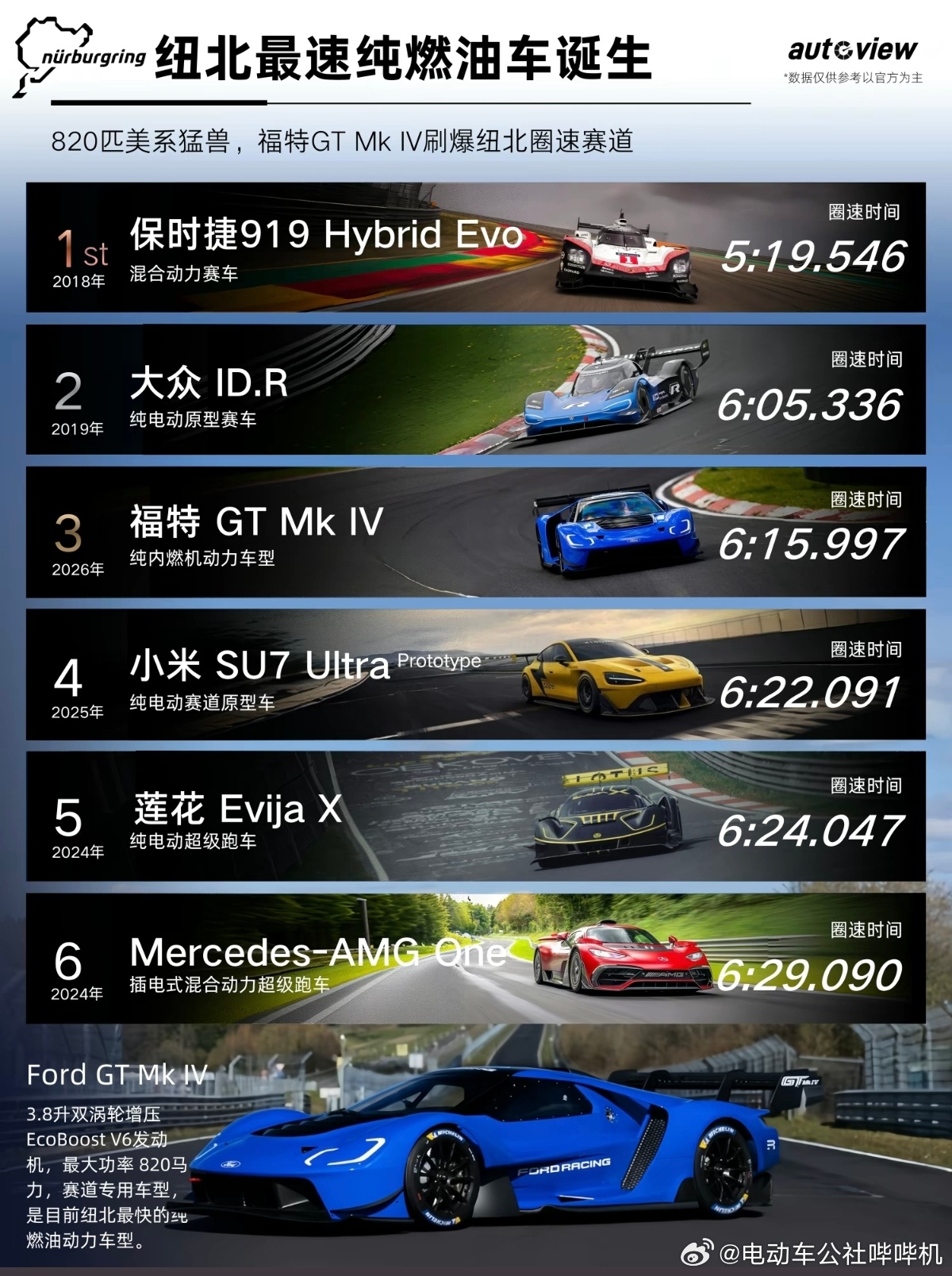 当然,福特这台车也是纽北总榜前6里唯一的一台纯燃油车,其他都带电。