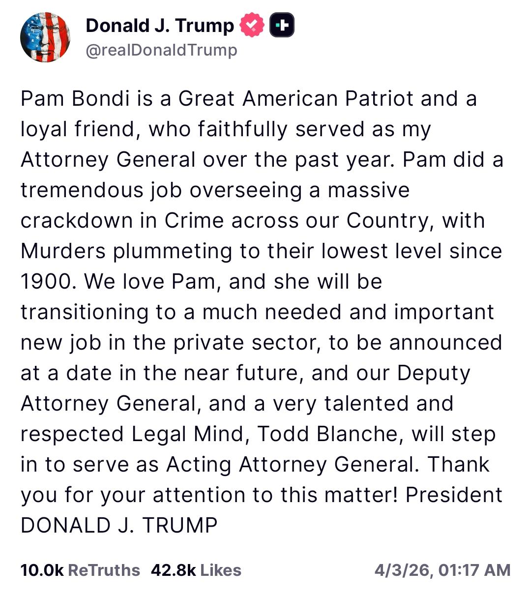 白宫人事大地震,连为特朗普“著书立说”的铁杆都没放过? 最近这波白宫离职潮, 已经不是“换人”了, 更像一场定向清洗。 最让人意外的是, 连卡什·帕特尔——那位 为特朗普写儿童书《The Plot Against the King》、 把自己比作“识破阴谋的巫师”的FBI局长, 也出现在了“即将被解职”的名单上。 ✅ 已确认离职: 1、克里斯蒂·诺姆,国土安全部长(3月4日被解职) 2、乔·肯特,国家反恐中心主任(3月下旬辞职,政策分歧) 3、兰迪·乔治,陆军参谋长(4月2日被防长赫格塞斯解职) 4、帕姆·邦迪,司法部长(4月2日被解职) ⚠️ 被传即将离职: 1、卡什·帕特尔,FBI局长 2、丹尼尔·德里斯科尔,陆军部长(据称是JD·万斯的人,与赫格塞斯内斗) 3、洛丽·查韦斯-德雷默,劳工部长 这场清洗最反常的地方在于: “忠诚”不再是免死金牌。 帕特尔是绝对铁杆, 却因清洗FBI过猛、引发诉讼,成了烫手山芋; 德里斯科尔是万斯的亲信, 反而可能因“站队副总统”被敲打。 换句话说: 现在特朗普要的不是最忠诚的人, 而是忠诚且不惹麻烦的人。 那咱们的海排长, 战后“发动战争”的这口大黑锅 怕是背定了! Source: FB
