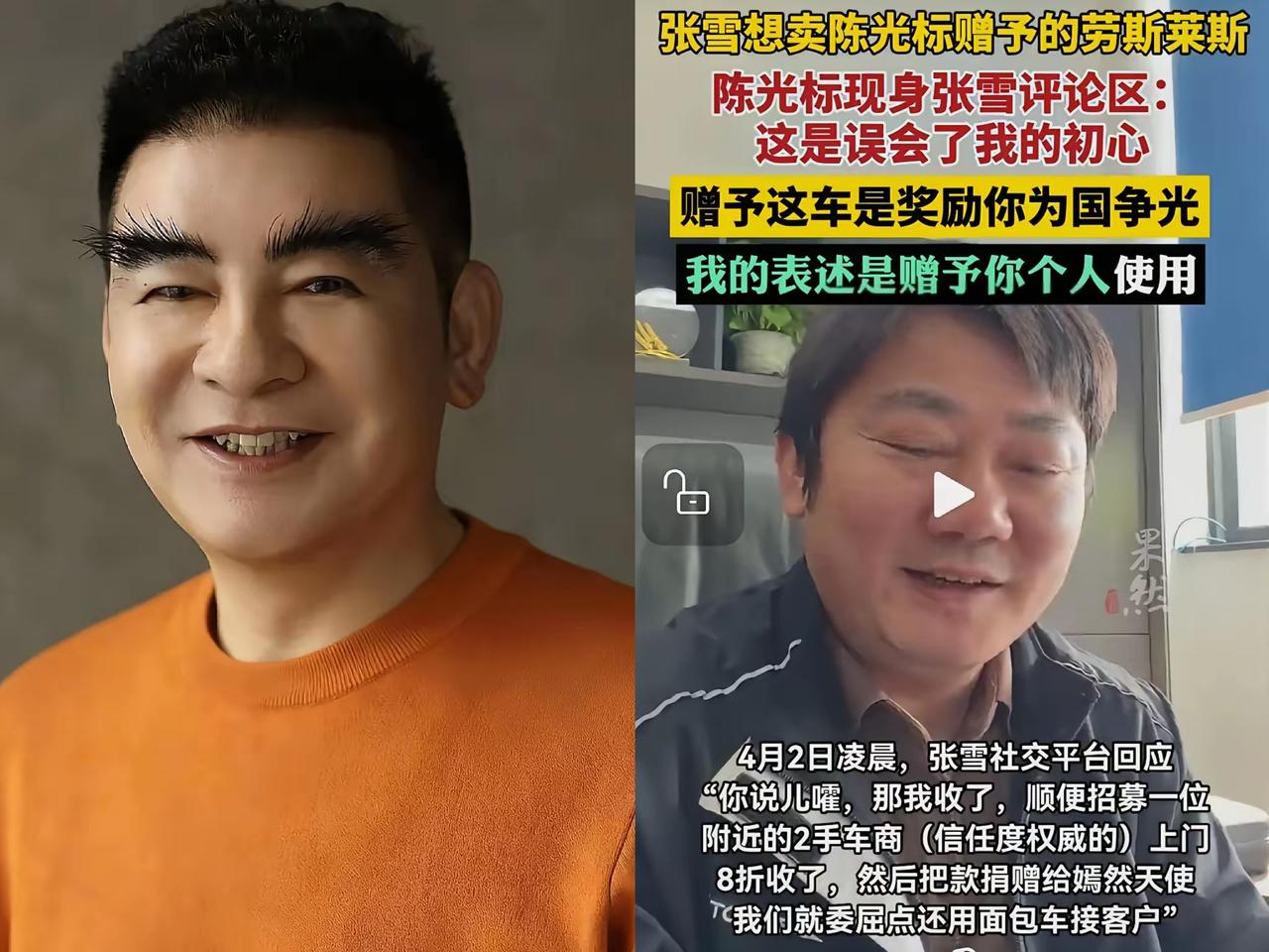简直笑不活了,今天最尴尬的绝对是陈光标! 本想借着张雪夺冠送1300万劳斯莱斯博好感,既能赚热度又不用真亏太多,怎么算都是稳赚的局。 谁料张雪完全不按套路走,直接放话收车后8折卖给车商,钱全捐嫣然基金会,瞬间把陈光标架在了两难境地。 送吧心里憋屈,不送又显得玩不起,这波操作直接戳破了套路式慈善的小心思。 比起虚头巴脑的排场,实打实做善事才更有分量,张雪这步棋走得太通透。 你觉得这场赠车风波,到底谁才是真正的赢家?