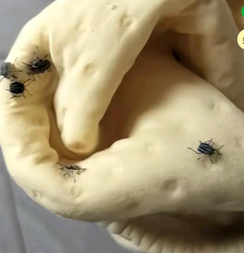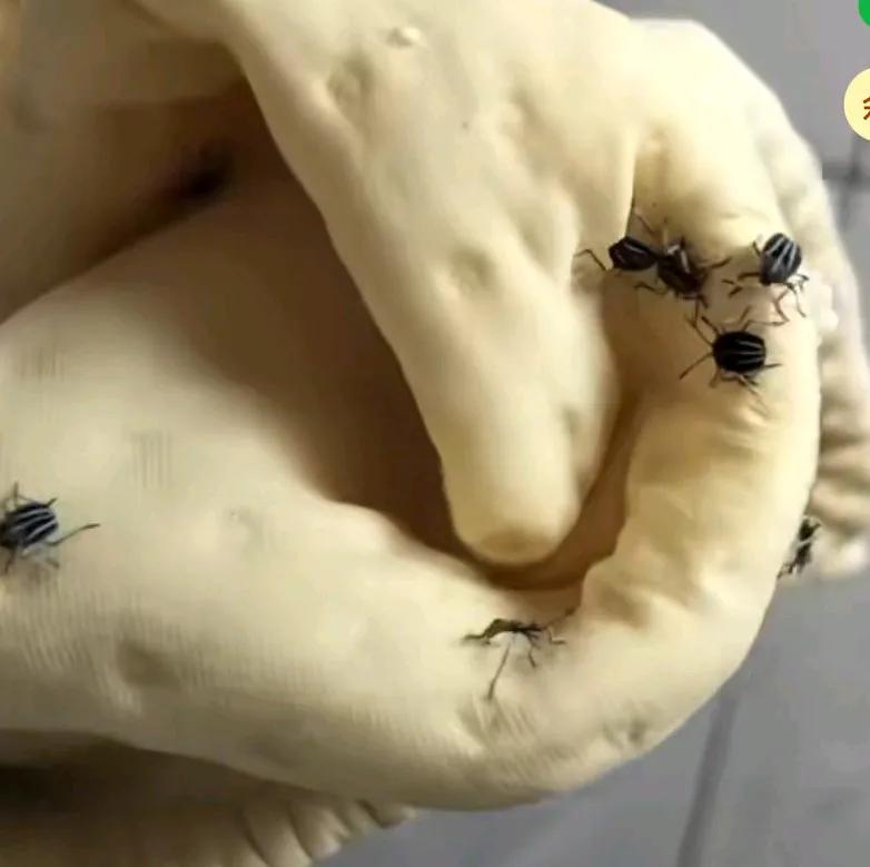 妈妈拿出宝宝裤子,想给宝宝穿上,发现里面密密麻麻全是虫子, 我再看了一下, 头皮都发麻,否则给孩子穿上, 不知道会有怎样严重的后果呢? 这裤子到底是没洗生的虫子,还是做工质量面料的原因才生的虫子, 或者是放在橱子里生的虫子呢。 网友说,这是臭屁虫, 这种虫子到处下蛋, 随机刷新在树叶、 纱窗、作业、衣服、毛巾等等物品上, 视频里的就是孵化出来的幼虫, 赶紧扔掉吧,不能再穿了。