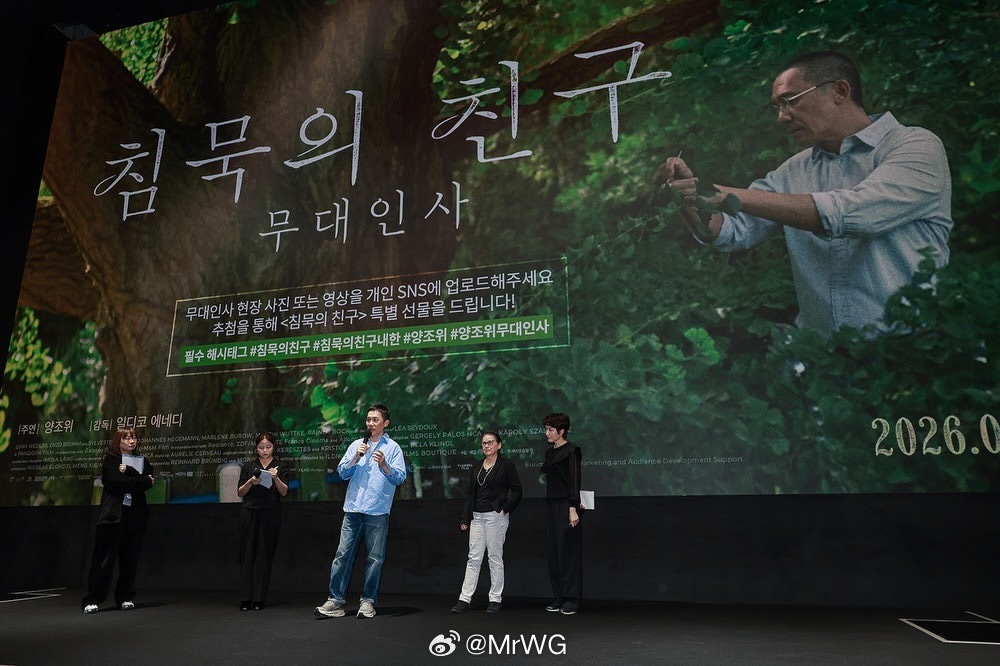 梁朝伟影讯 【寂静的朋友】韩国4/15上映,梁朝伟到达韩国,巡回路演DAY 1——梁朝伟 亲赴韩国巡演首日,影院气氛火爆,与伊尔蒂蔻·恩伊达导演一起出席映后✨;期待内地早点有消息~电影寂静的朋友