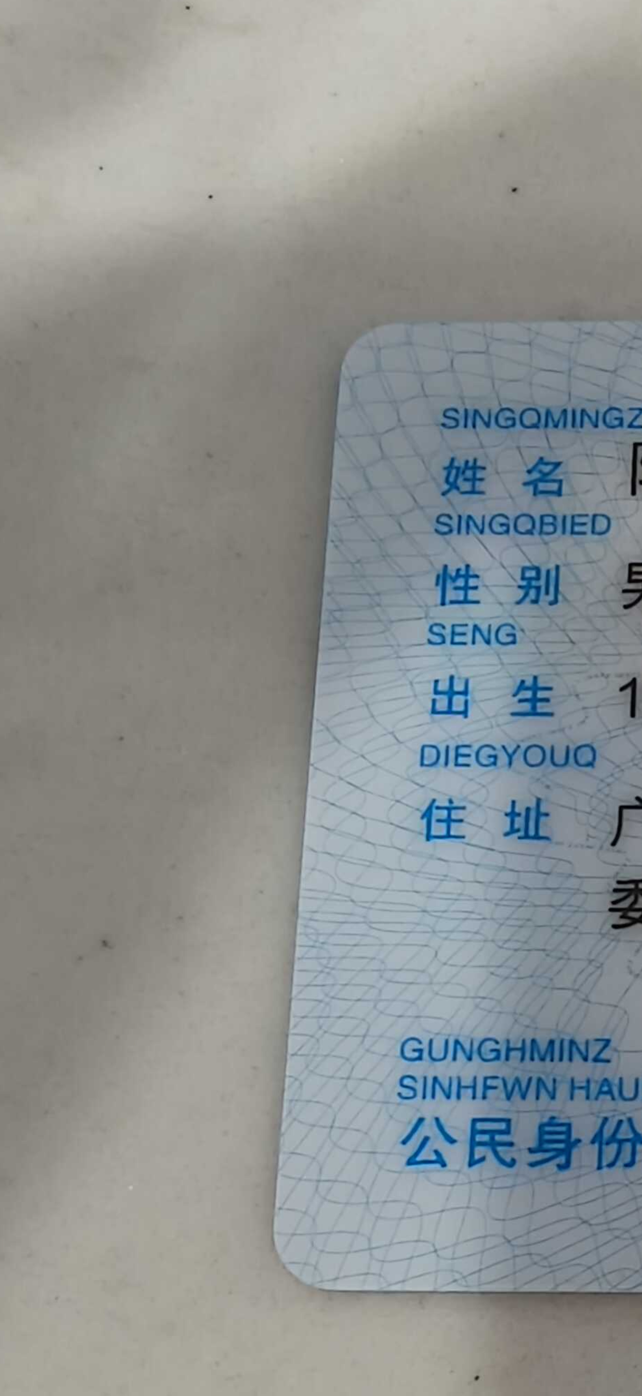 原来身份证不是全国统一的俺的是这样的,有拼音,但感觉也不是拼音,属于牛头不对马嘴的那种,你的身份证啥样的,发出来看看,跟我这个方式 深圳·深圳深业上城