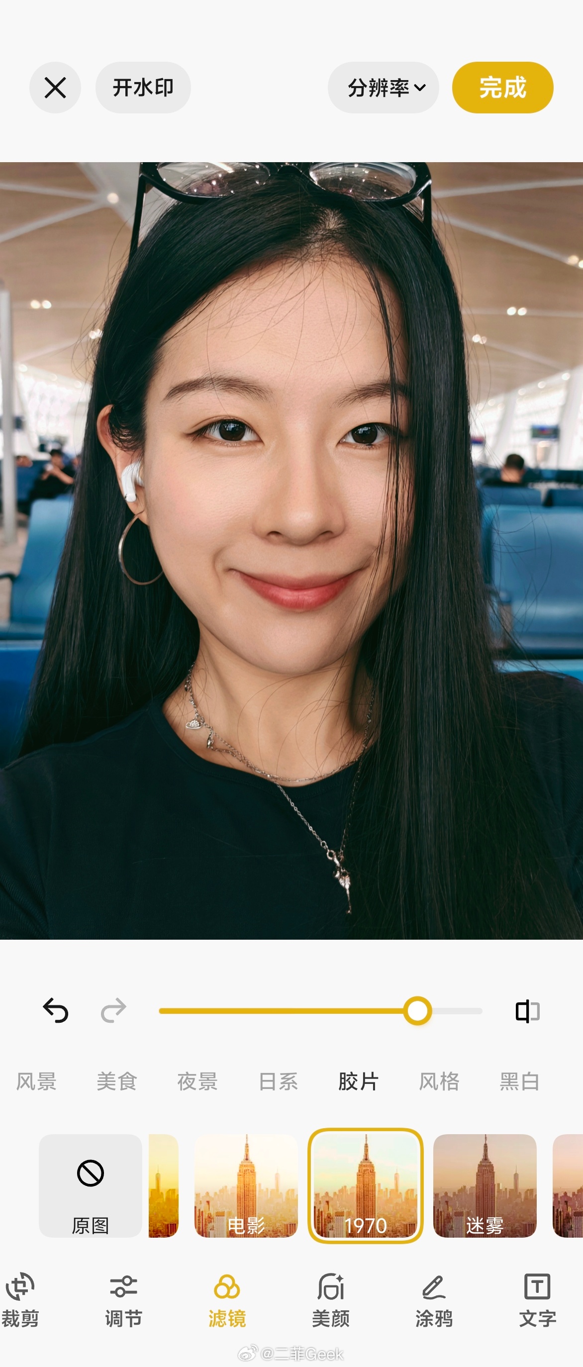 用蓝厂手机的姐妹快去自拍一张再试试系统自带的“1970”滤镜!!!加上之后有电影感了哎甚至看起来貌似有一点点高级感了