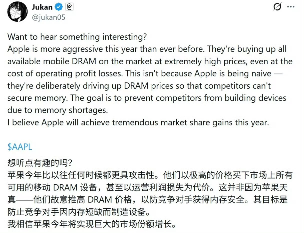 苹果天价扫荡全球手机内存财大气粗的苹果,不惜牺牲利润,让对手没有内存可用,这一招真狠!