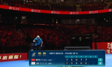 温瑞博1比4林昀儒(-7,-5,5,-7,-7),止步2026年澳门乒乓球世界杯男单十六强,下一轮:林昀儒(中国台北)VS张本智和