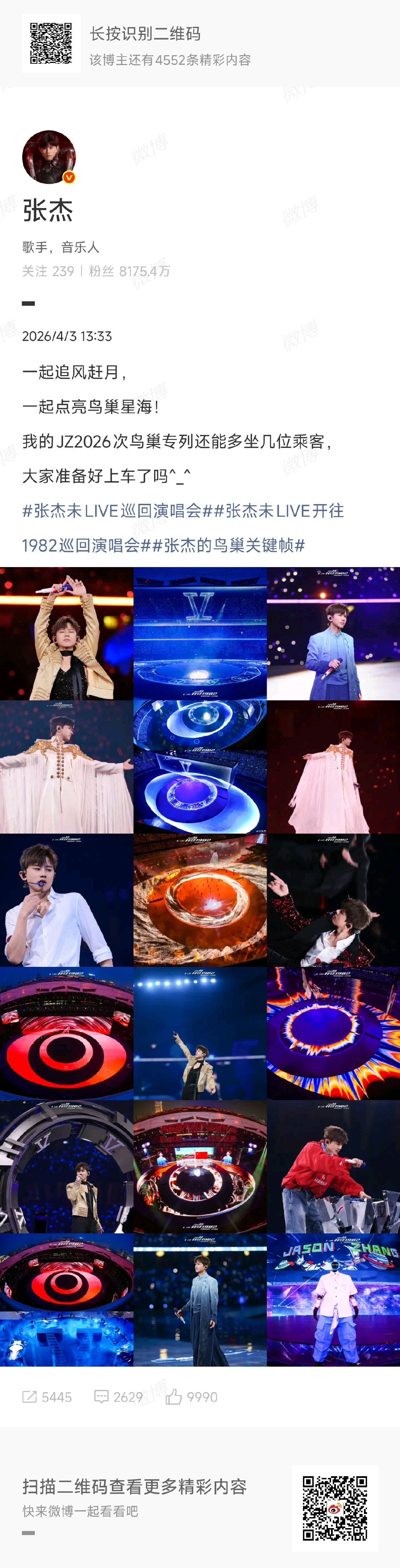 张杰演唱会点亮鸟巢星海张杰鸟巢演唱会星海张杰鸟巢演唱会一起追风赶月,一起点亮鸟巢星海!期待杰哥带给我们更多精彩舞台