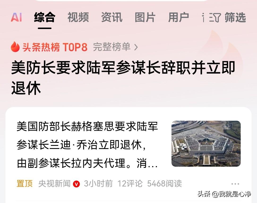 美国军方已经开始了政治大清洗,很有可能特朗普要来一波大的 但是军方的反对力量实在是太强大了,想要办大事之前,就一定要先打扫打扫卫生 最新消息,美国防部长海格塞斯,要求陆军参谋长兰迪.乔治辞职 要求他立刻提前退休 而强制退休的理由很简单,就是不忠诚于特朗普,拒绝执行国防部长的命令,属于政治上的异己分子 很显然,美军内部因为是否派陆军的问题而陷入到了巨大的争议当中 这位陆军参谋长肯定是反对特朗普的派兵计划 结果就被清洗掉了 所以说懂王说什么不重要,他做什么最重要? 嘴上说不会动手,很快就结束战争,但是实际上他每一步都在积极的备战