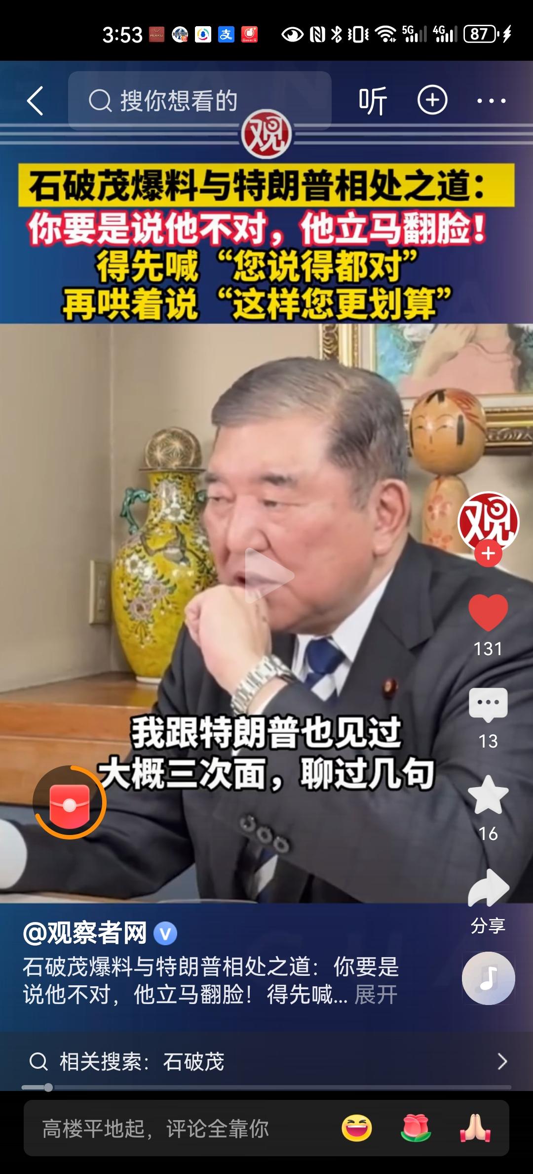 日本前首相石破茂,讲述他与特朗普的相处之道。前面就像哄孩子一样,张口就说您说的对,您说的对。如果想表达这样的意见,那就讲出意见之后,还要对特朗普说,这样你可能更划算。后面这种讲法,不就是商人谈判之间的惯用手法吗? 特朗普挑起中东的军事冲突,德先生评估,未来不一定有好的结果。军事冲突不但需要消耗大量的财力,而且还要丧失民众的性命。这未来都是要反噬的,将来特朗普如何收场?我估计他现在内心开始慌了,但是如果继续撑下去,有可能越来越慌,最终到内心慌的一批! 世界有时候就像一个草台班子,而特朗普的上台则标志着草台班子正式开始登台唱戏。全球的经济、政治军事被他搅得一团糟,真的好奇怪啊。不过这有助于我国在各方面的继续崛起,想一想,如果地主家的孩子,长大之后都不倒行逆施,大家又如何联合在一起,彻底翻天,翻身做主人呢?