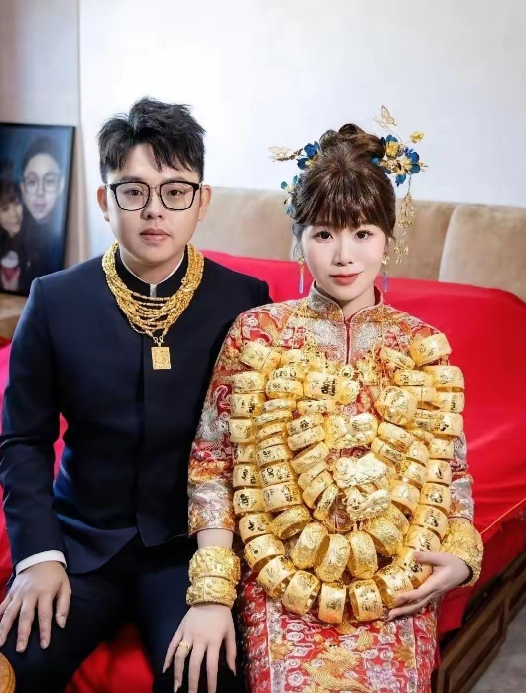这么豪气的婚礼不是一般人有能力攀比的,就算广东应该也不会很多见吧?全身挂满了沉甸甸的金项链、金手镯等金首饰,需要用斤计量,这家里得多有钱才能够撑得起这么豪横的场面啊!