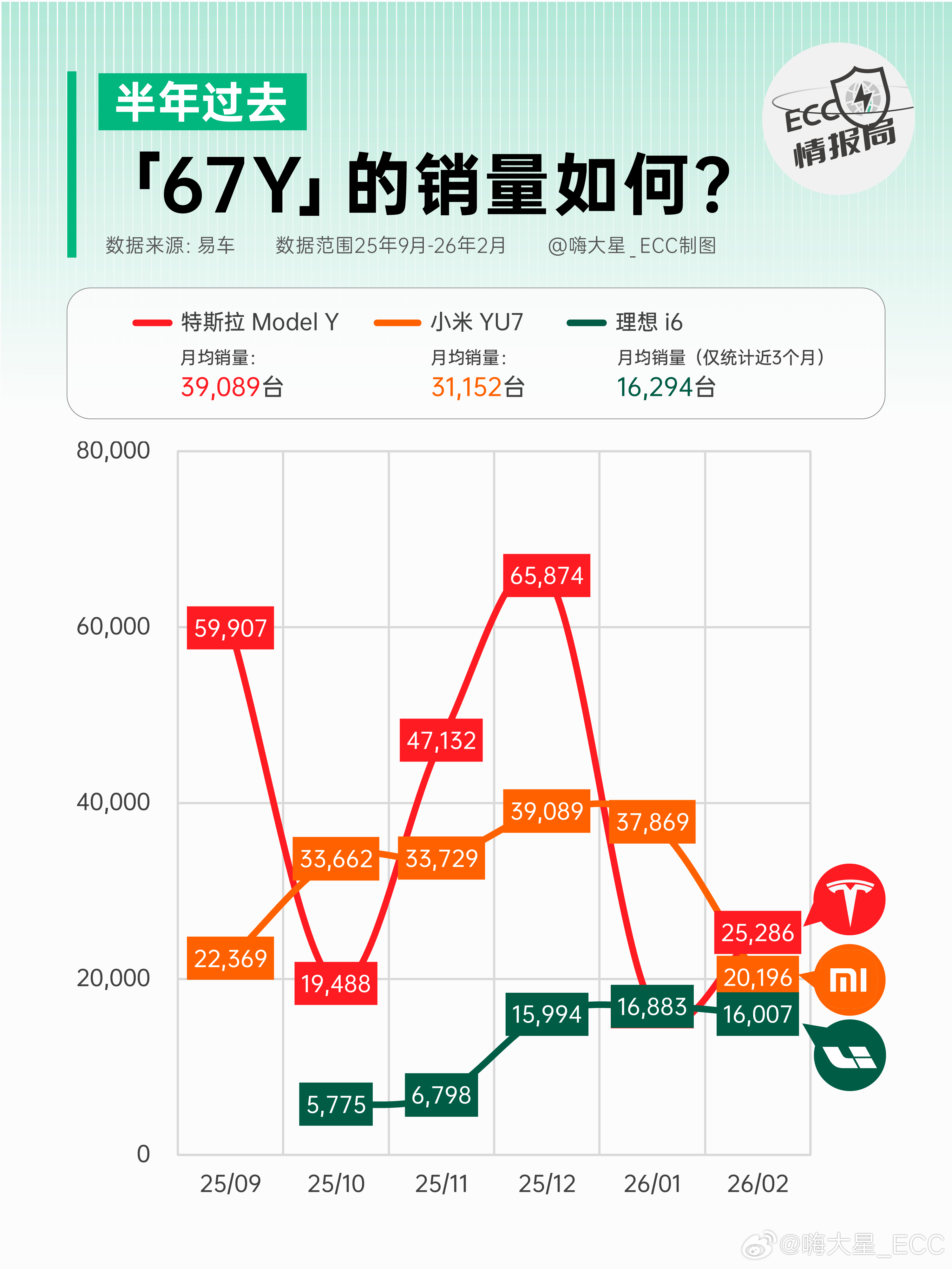 从市场端来看:ModelY的优势在被不断稀释,销量即将被YU7追平。i6产能问题解决后,月销稳定在1.6万左右。而特斯拉自身近3年的销量,没有明显增长,月均在5万出头。