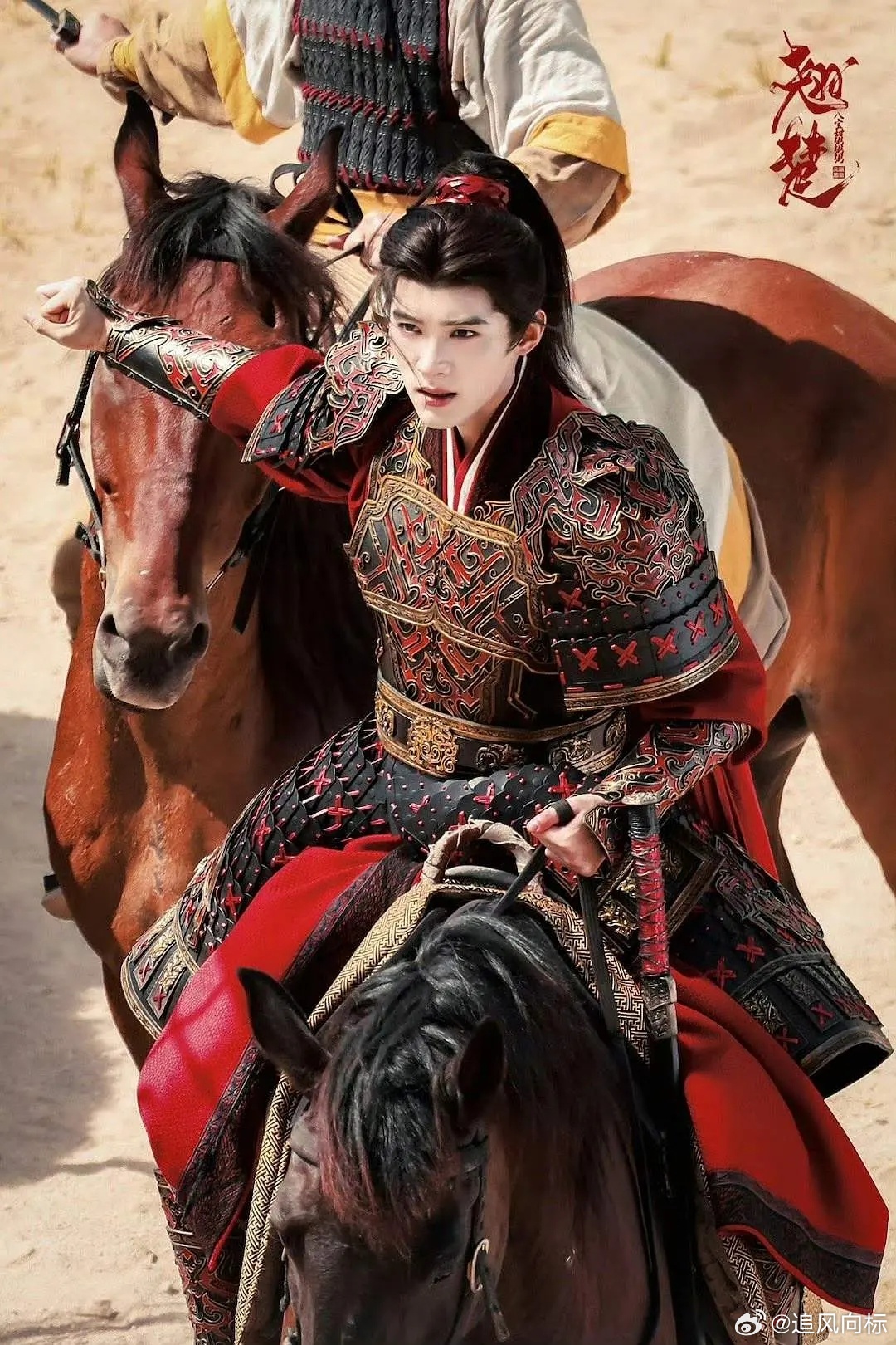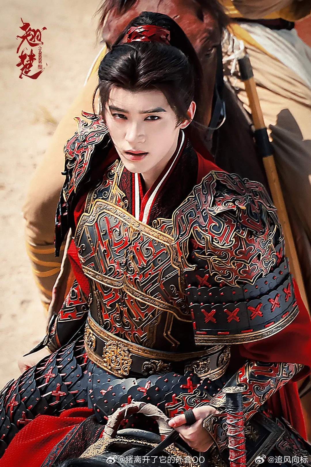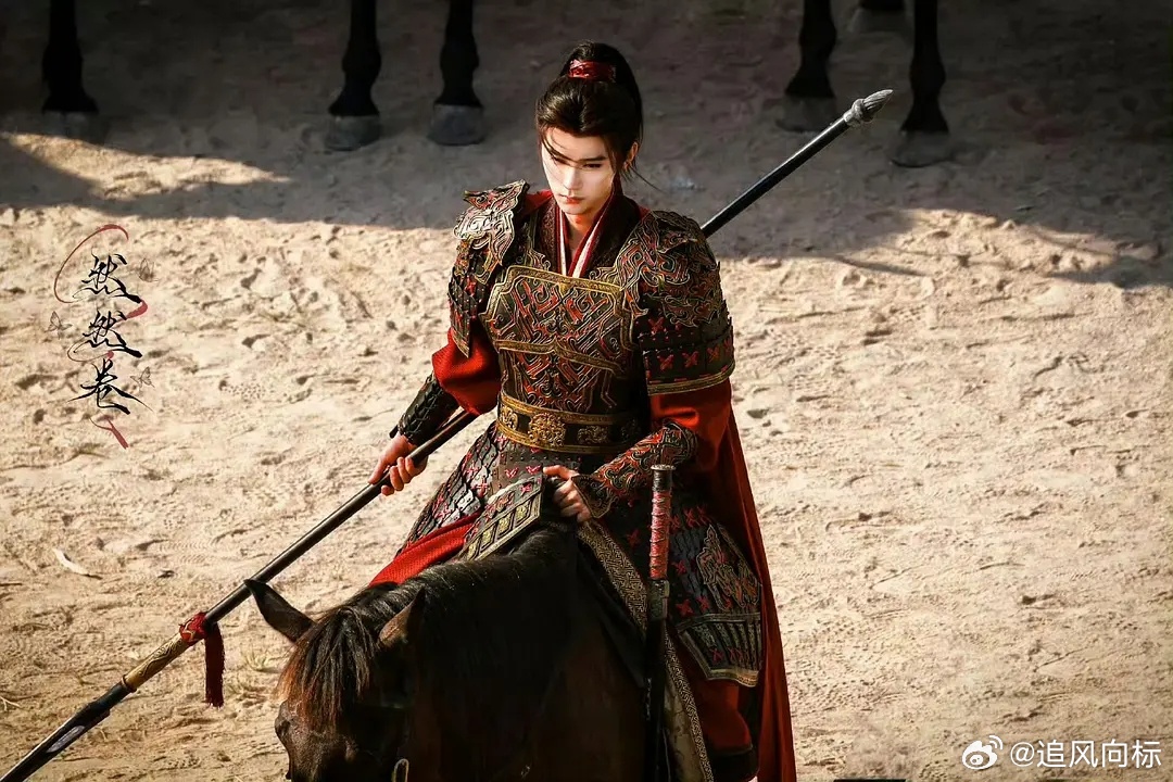 凌厉的眼妆、高马尾、耳钉,各种细节都非常符合原著人物个性,一个那么能打的少年将军,想也知道是不太会低调的,周翊然很贴合原著。