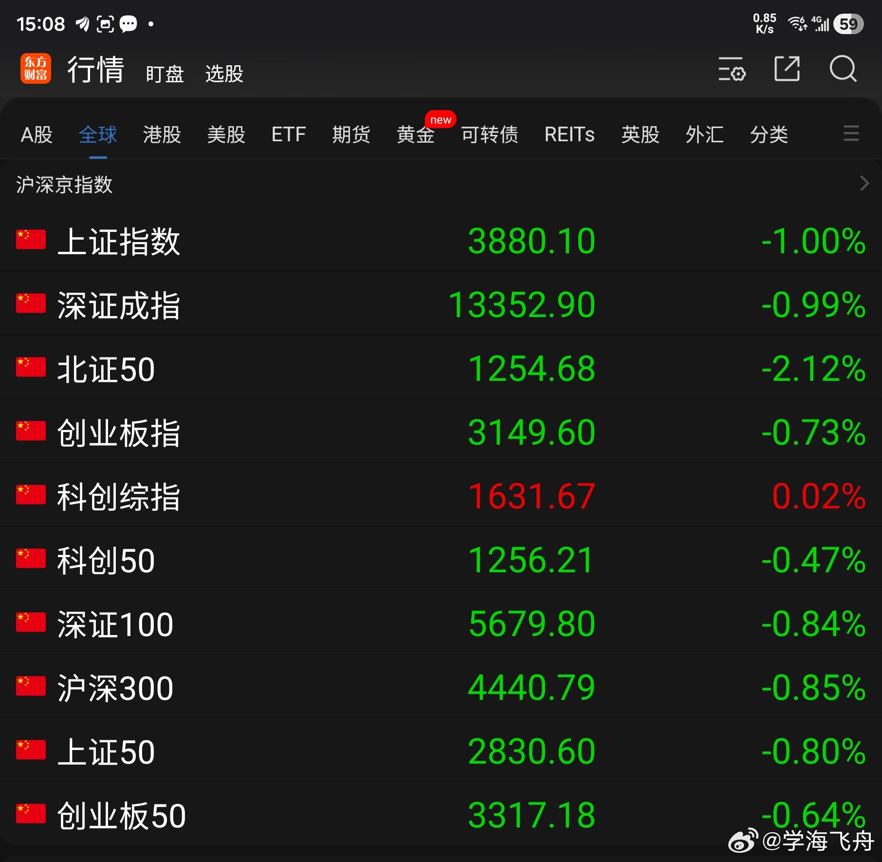 今天A 股行情可谓又一个黑色星期五,大盘继续沿袭了昨天下跌的走势:东方财富App 显示的 10 项指数除科创综指微涨 0.02% 收红 以外,其他9 项指数 均下跌收绿,上证指数跌 39.19 点至 3880 点,又一次失守 3900 点关隘。 个股跌势亦很惨:沪深京三交易所中,上涨的股票仅 687 支,比昨天少 332 支, 其中涨幅在 7% 以上的有 74 支,比昨天 多 13 支; 持平的股票有 21 支,比昨天少 32 支;下跌的股票达 4606 支,比昨天多 370 支, 其中跌幅在7%以上的有 142 支,比昨天多 78 支。三个市场全天的成交量为 16691 亿元,比昨天缩量 1889 亿元,量能创今年三月以来新低。今天A 股量价齐降,既有外部地缘政治的影响,亦有内部信心不振的因素,加之又是清明节前的最后一个交易日,观望情绪较浓,很难走出上扬行情,期望节后放量,走出反弹行情