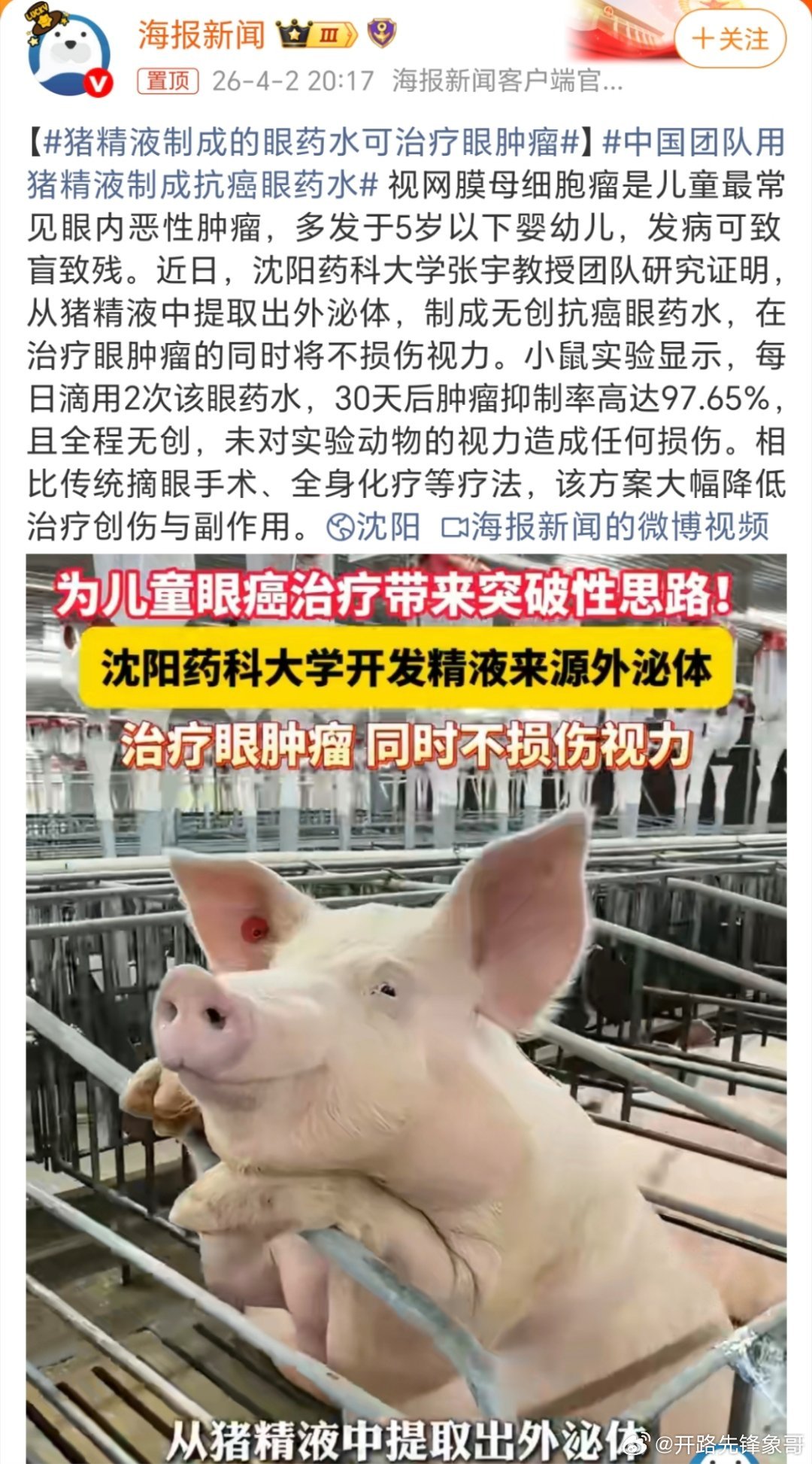 猪精液制成的眼药水可治疗眼肿瘤是真的可以吗?