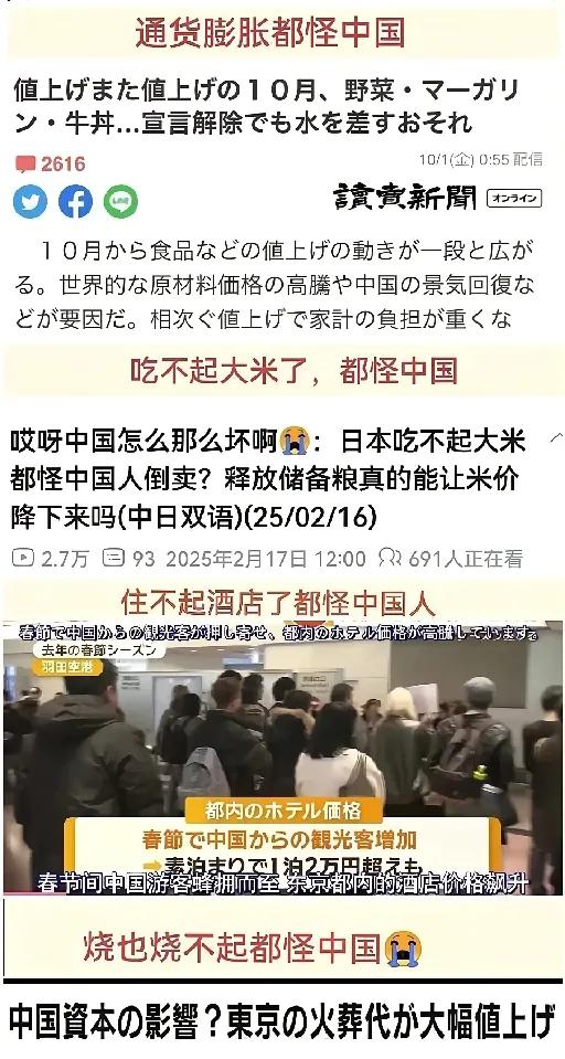 笑不活了!日本网友疯玩吐槽:啥啥都怪中国?这病得治! 日元汇率暴跌、本土米价飙升,甚至连喝不起咖啡都要甩锅给中国?日本社媒这份总结直接戳破荒谬,网友集体破防:“这逻辑比二次元剧情还离谱!” 真相其实很简单:日元贬值是自身财政与全球经济博弈的结果,和中国八竿子打不着;日本米荒更是自家农协的锅——把优质米出口填财政亏空,再逼本土人吃陈米,纯属内耗,跟中国大米有什么关系。 更魔幻的是,连咖啡消费都能扯到中国,这种强行关联被网友吐槽“像被洗脑”。明明是自身经济治理和产业结构的问题,却习惯性找外部背锅,这种病态甩锅,真够奇葩的。
