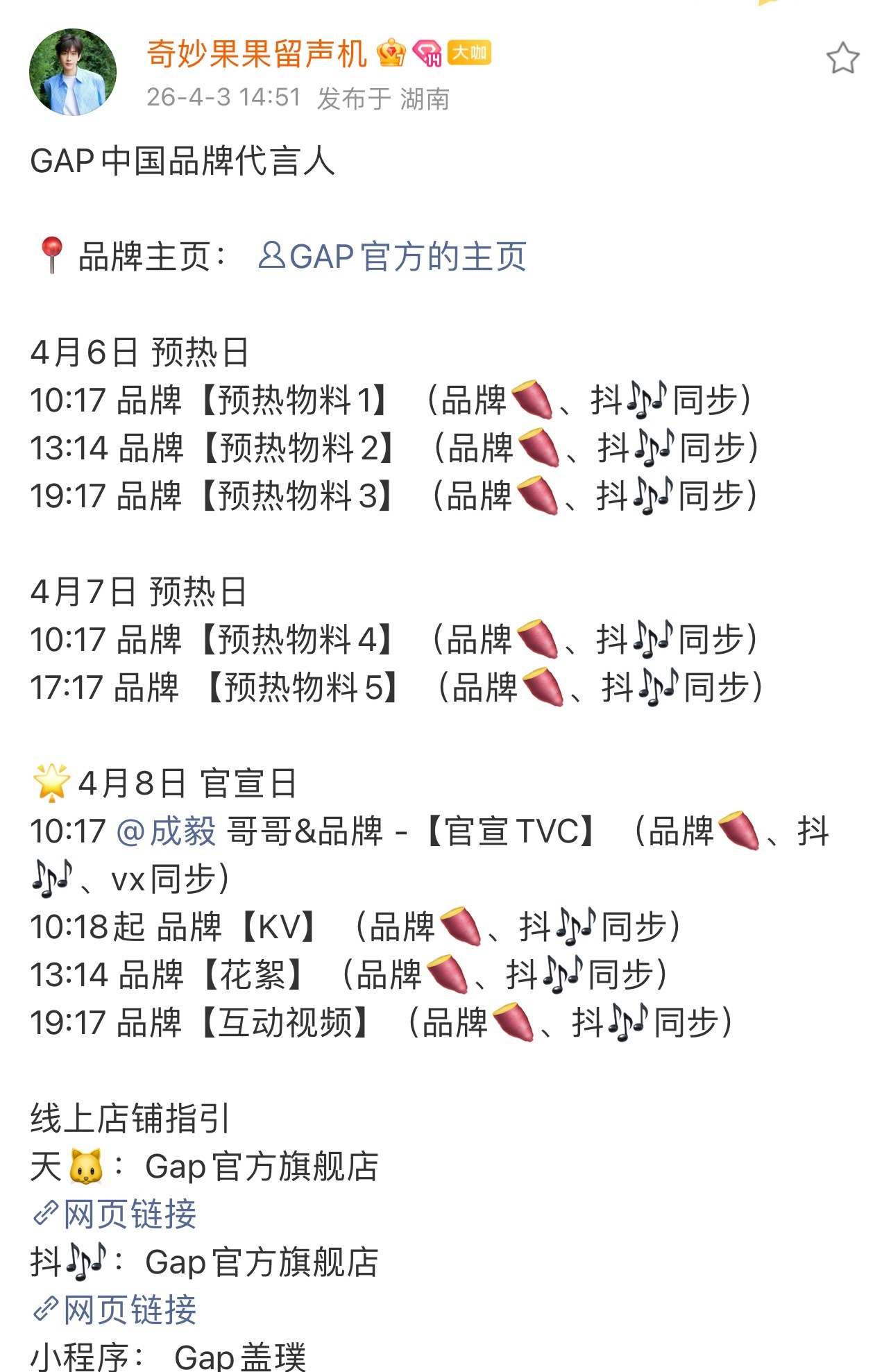 成毅GAP中国品牌代言人!新的开始新的物料新的地广排面新的周边一整个期待住了!!