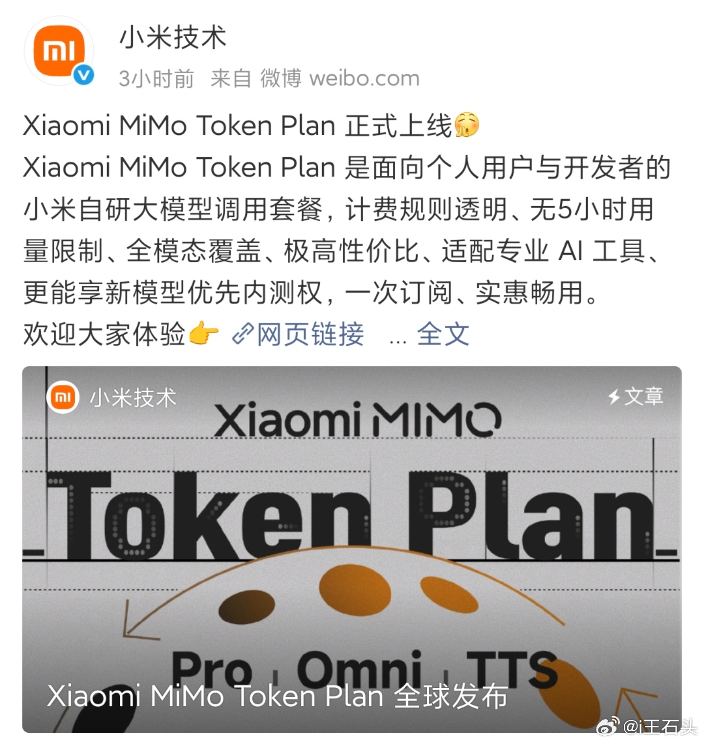现在小米推出Token套餐 ,MiMo-V2-Pro也在里面,看了下价格挺实惠的,入门版才39元一个月,也算是给刚接触AI的人提供了一个好的选择,才一杯咖啡的价格。而且可以同时使用MiMo-V2-Pro、MiMo-V2-Omni和MiMo-V2-TTS。