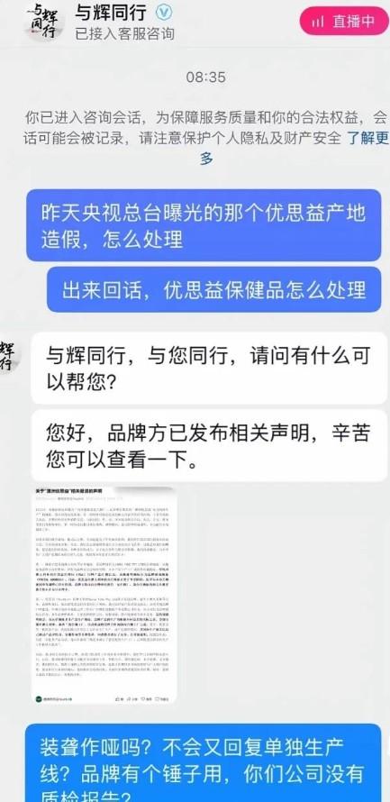 优思益风波升级,董宇辉评论区算是彻底沦陷了。 与辉同行一直标榜自己选品苛刻,为什么屡屡犯错? 侥幸过关,故技重演,还自以为反败为胜。大众的眼睛是雪亮的,不会给他们太多机会了,出来混都是要环的! “直播间所销售产品都有实地考察”现在回看就是一句笑话! 打架不是起哄。对于伪劣、假冒产品,大家都深恶痛绝,问题产品打假一定要打在根上! 打假的根源是伪劣产品,要让造假、制假者付出沉重代价!