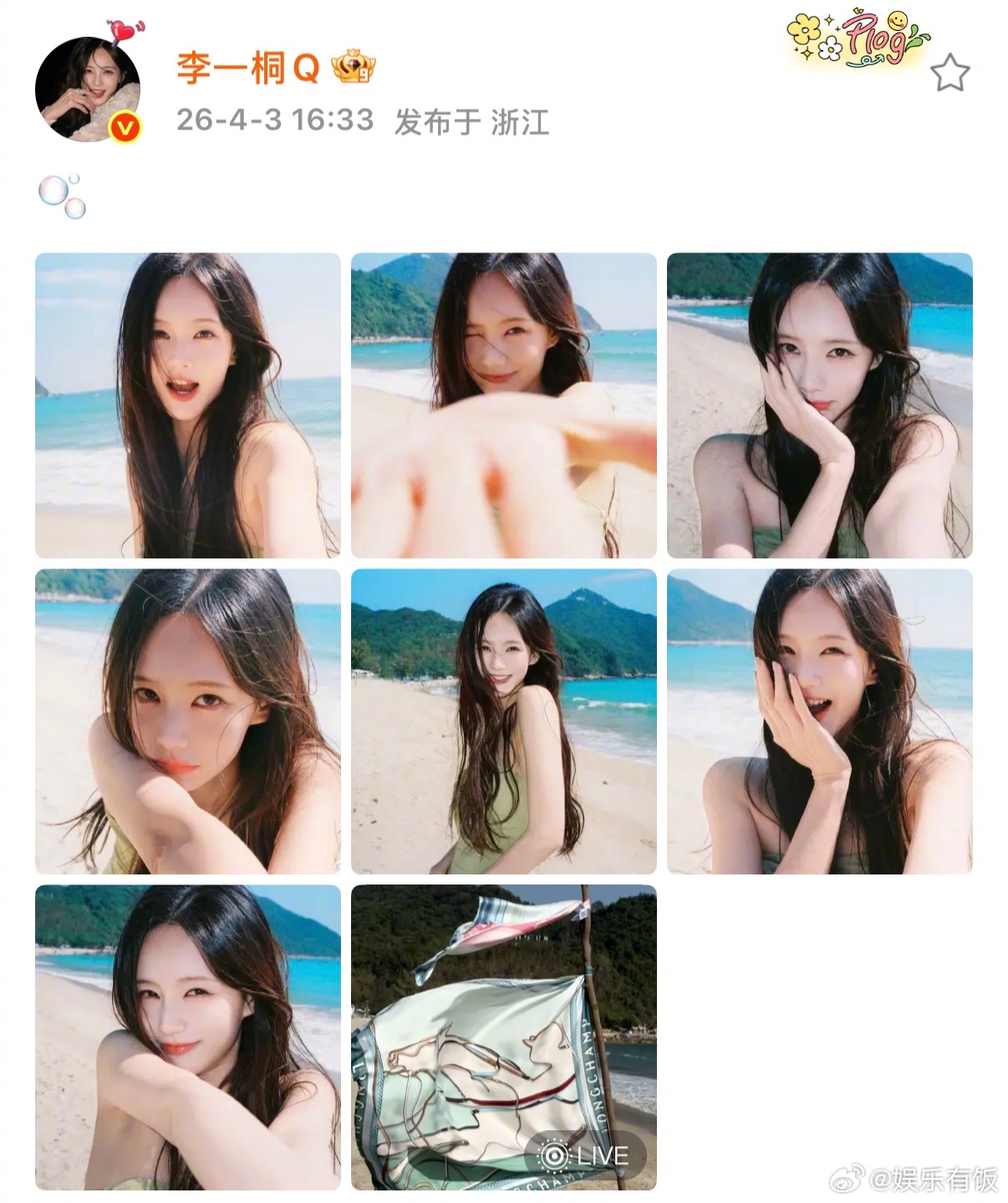 李一桐夏日氧气感 海边plog太绝了!阳光、沙滩、海风,满屏都是清爽的夏日氧气感,甜妹氛围感直接拉满~