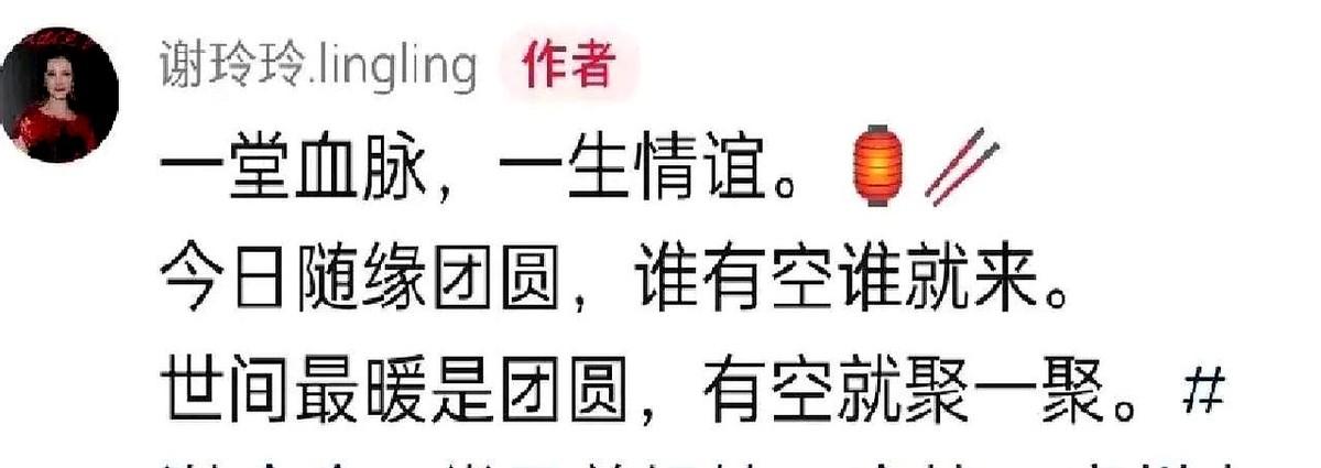 69岁谢玲玲,这格局真的少见! 离婚三十多年,跟前夫家处得比亲戚还亲。最近又跟已故大伯林建名的子女们聚会,稳坐C位抱着混血侄孙,大伯的第三任妻子王薇也在,俩人笑得那叫一个亲切。 人家跟前婆婆林余宝珠的关系更是铁,一个叫“永远的奶奶”,一个叫“永远的新抱”。过年过节,两家人就在谢玲玲的豪宅里聚餐,堂兄弟姐妹齐聚一堂,她就是那个主心骨。 林建名的女儿每年都给她过生日,孩子们都把她当至亲。这份体面和智慧,真不是谁都能做到的。 只能说,有的人离婚是撕破脸,有的人是多了一门亲戚。
