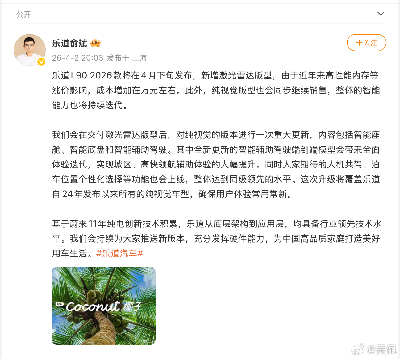 乐道 L90 激光雷达版要来了。神玑芯片 + NWM 2.0 大概率同步跟上,多加万把块,就能享受到看齐蔚来的智驾体验。