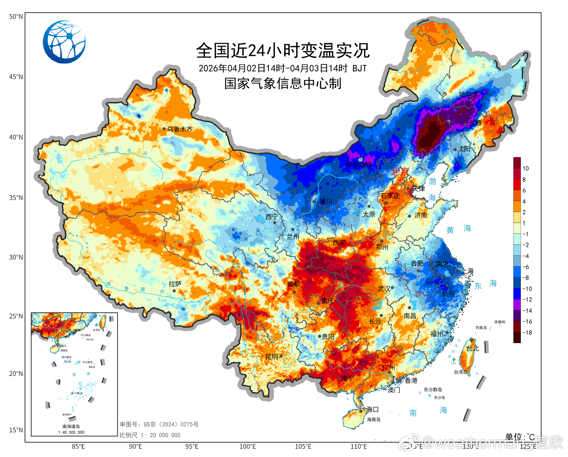 【气温波动】今天我国气温起伏大,在降水过后,冷空气到达前,甘肃南部、陕西南部、湖北西部、四川盆地、湖南西部、广西等地,气温上升6-12℃。陕西略阳升12.9℃、甘肃徽县升11.9℃、四川广元升11.2℃,重庆巫溪升10.4℃、湖北竹溪升10.9℃、湖南古丈升9.3℃、广西蒙山升11℃,为14时各省区市升温最强站点。