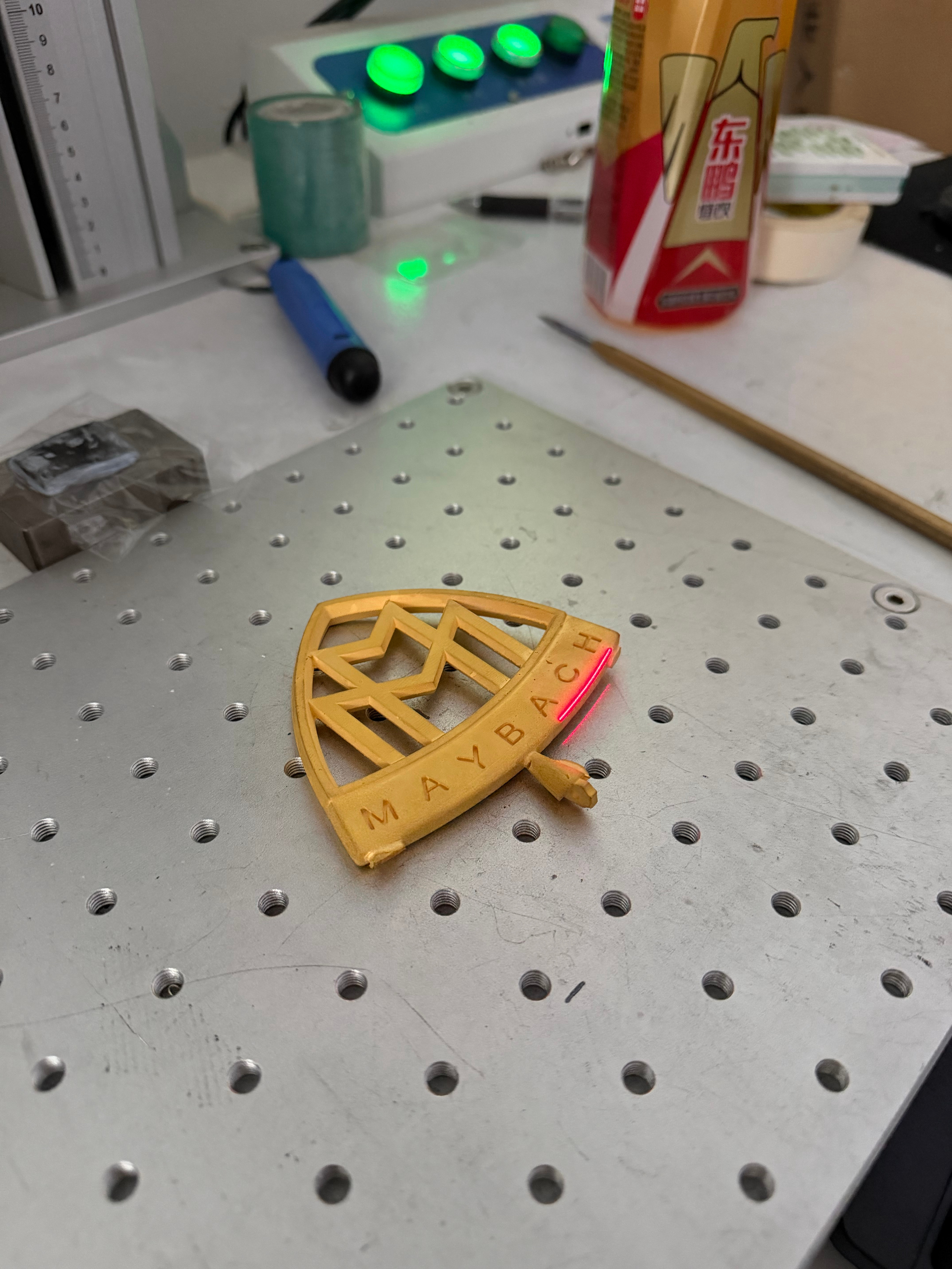 黄金迈巴赫车标 做好了猜猜多少克 猜对了 送你们黄金跟姚老板混一天吃9顿