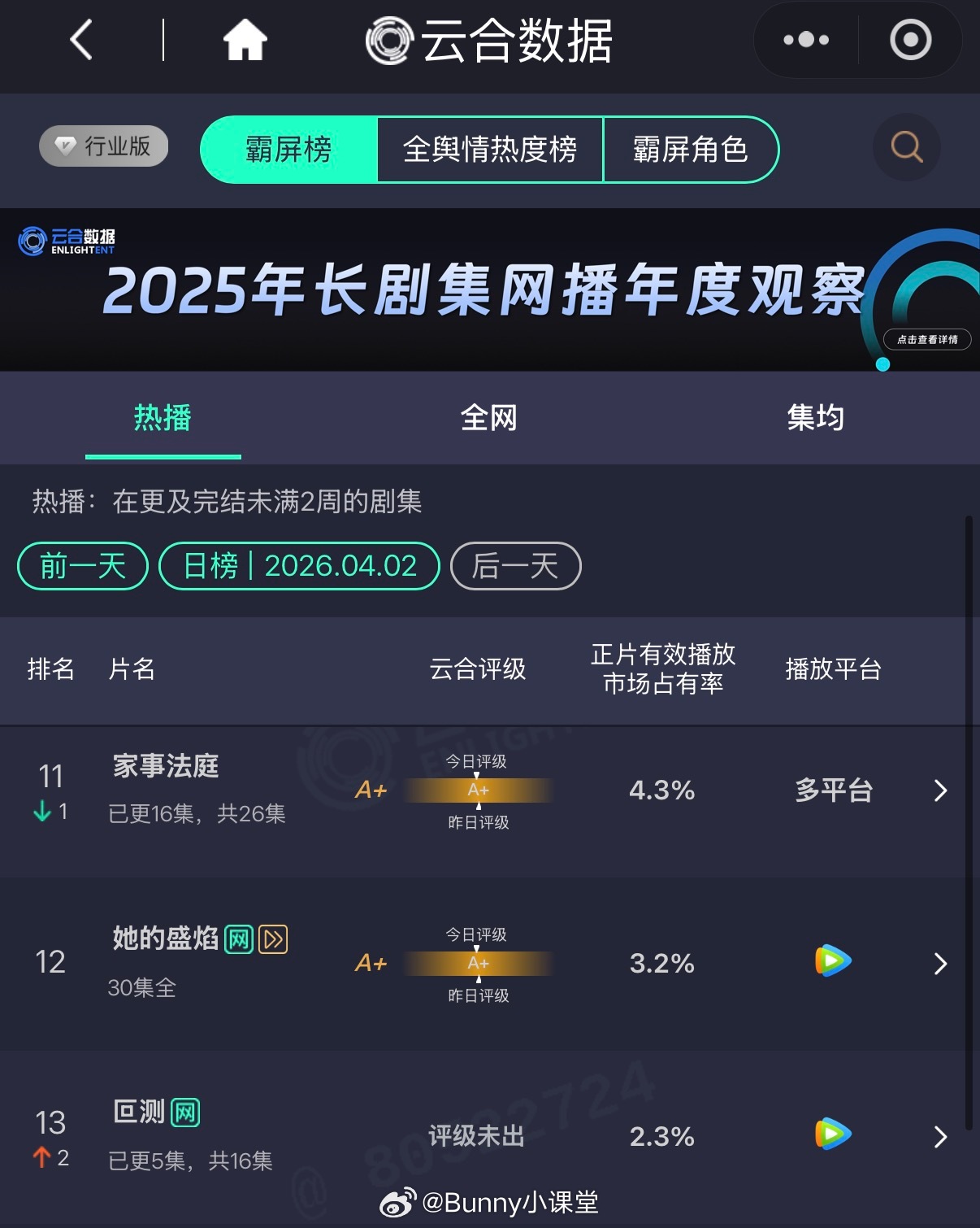 谁敢看,龚俊、任敏新剧《家事法庭》云合数据仍位列十名开外,网播广告更是数量惨淡…