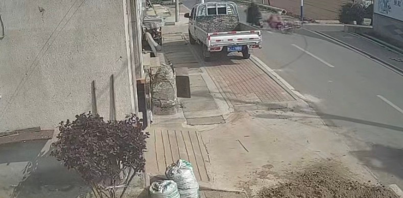 一段40多秒的监控视频显示,4月1日9时22分,谢老太在村道中骑自行车缓慢行驶,行至一处路口准备左转弯时,后方快速行驶的两轮电动车将其撞倒,然而事发后,两轮电动车主并未停车查看,而是径直驶离,留谢老太躺在马路中间。10秒钟后,不幸的事情再次发生,倒地不起的谢老太又遭驶来的三轮电动车碾压,三轮电动车驶出监控区域后,事发地附近的村民注意到这一情况并出门查看。