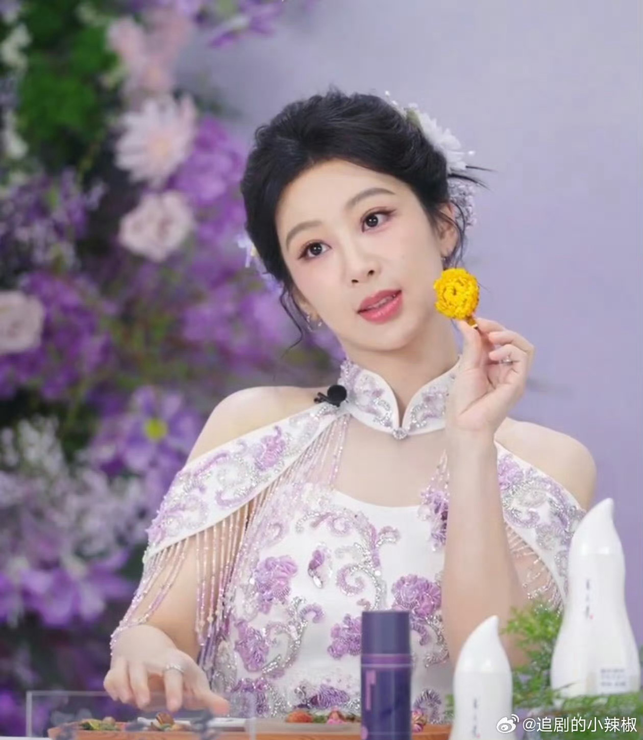 杨紫/玉兰花开💐杨紫紫色旗袍直播造型*杨紫没人通知我啊