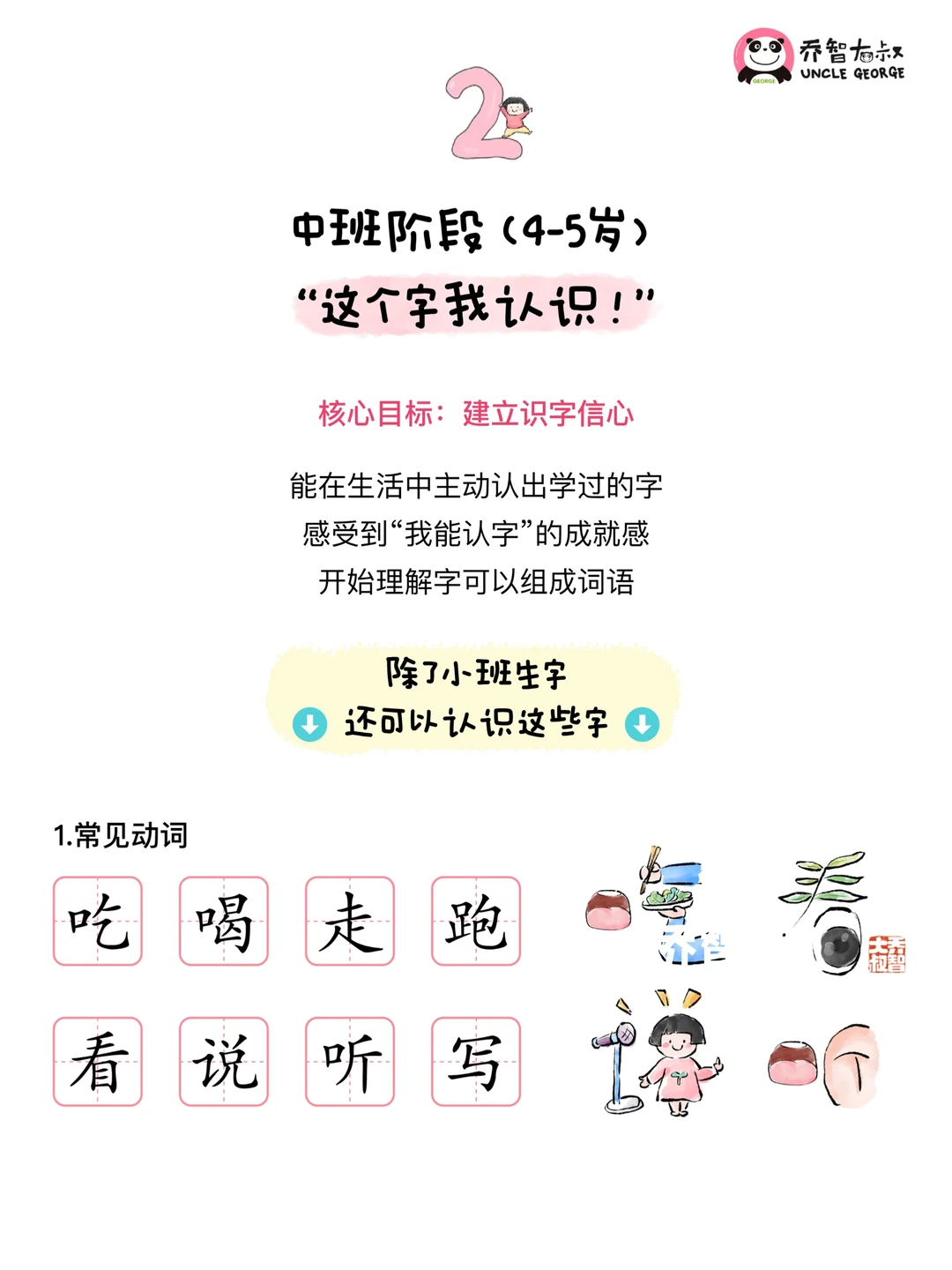 当孩子开始对书本上“小符号”产生好奇 指着路牌问“这是什么字”时 我们就知道——识字的小小种子,要发芽了 总结了一份《幼儿园识字计划表》 不是那种“必学清单” 像是一张温暖“邀请卡” 邀请孩子在生活中遇见文字 进而感受“原来字这么有意思” - 核心理念 - ①先“有趣”,再“有用” ②在生活中认字比书本上更自然 ③识字是孩子们“理解世界的工具” ④每个孩子都有自己的节奏,尊重它