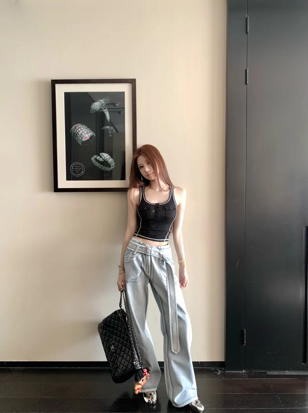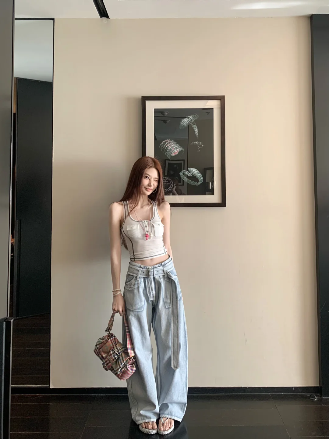 于明加穿紧身牛仔裤,太有魅力了