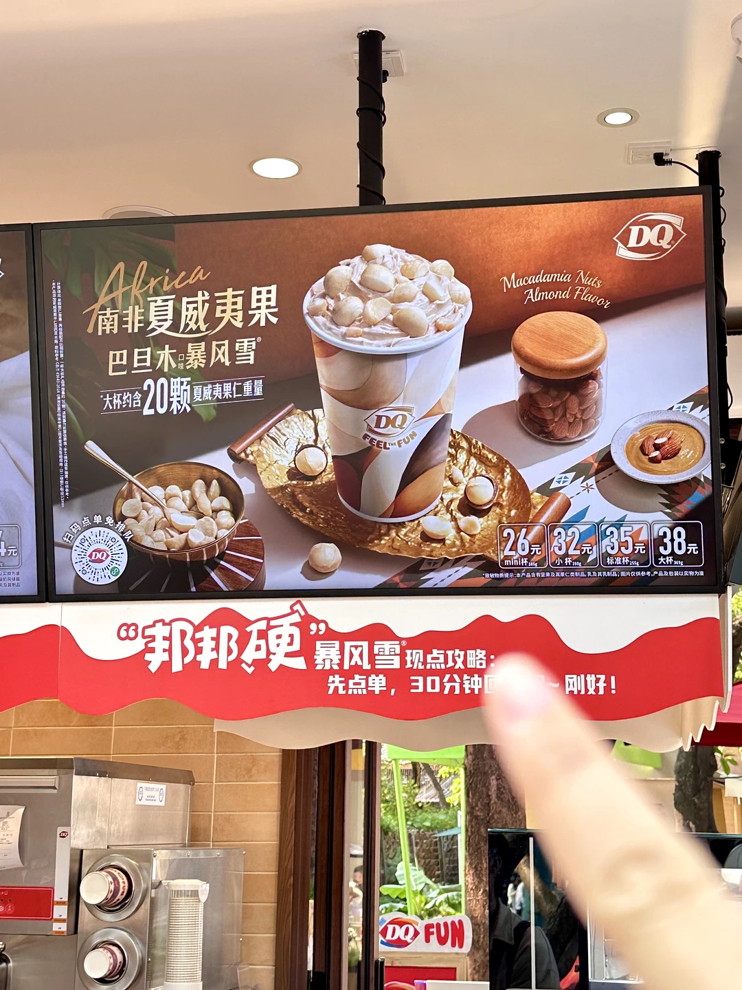 DQ新品南非夏威夷果暴风雪!我给到夯!👍🏻 本来只是路过想随便买杯冰淇淋。。。 结果好吃到我直跺脚!!🤣 每杯里面直接就有20颗夏威夷果的重量的果仁! 料多到溢出来!!! 一口下去,坚果的香气直接在嘴里炸开,浓郁到不行!混合着绵密的冰淇淋,一点也不甜腻,好好吃!😋