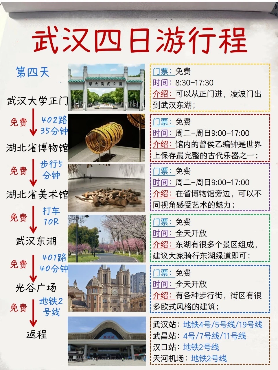 第4️⃣天:武汉大学正门——湖北省博物馆——湖北省美术馆——武汉东湖——光谷广场——返程