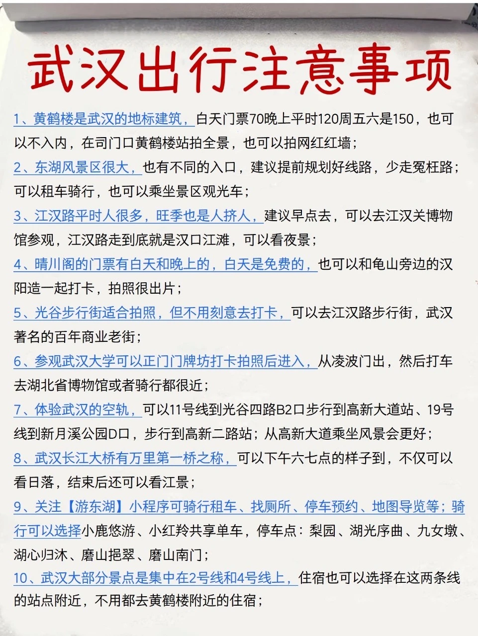 上周刚好去了一趟武汉,和闺蜜重新复盘后,总结的超顺畅4日游攻略;