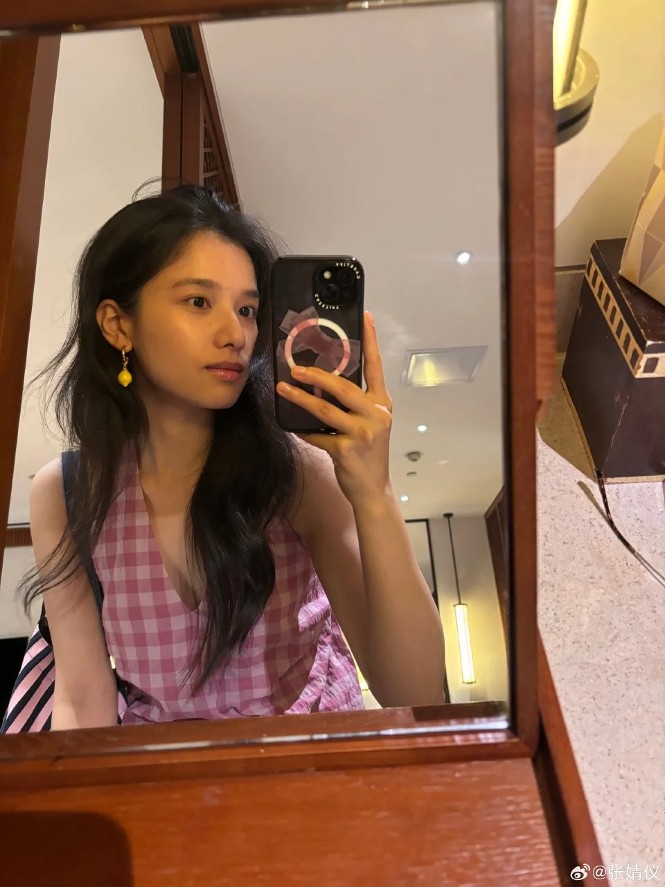 张婧仪今日更新一则私服,粉色挂脖格子上衣好美啊,原图直出的美貌很能打!