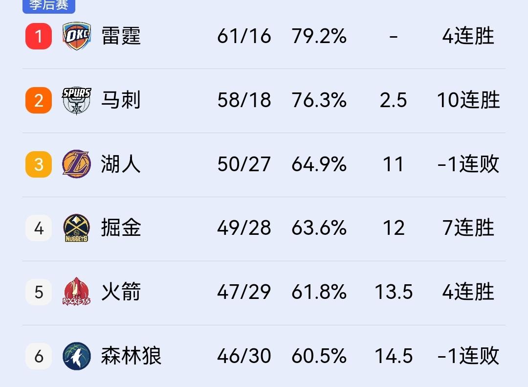 瞎说什么啊?常规赛还5场或6场比赛,是湖人第三或是掘金第三现在还不知道呢!