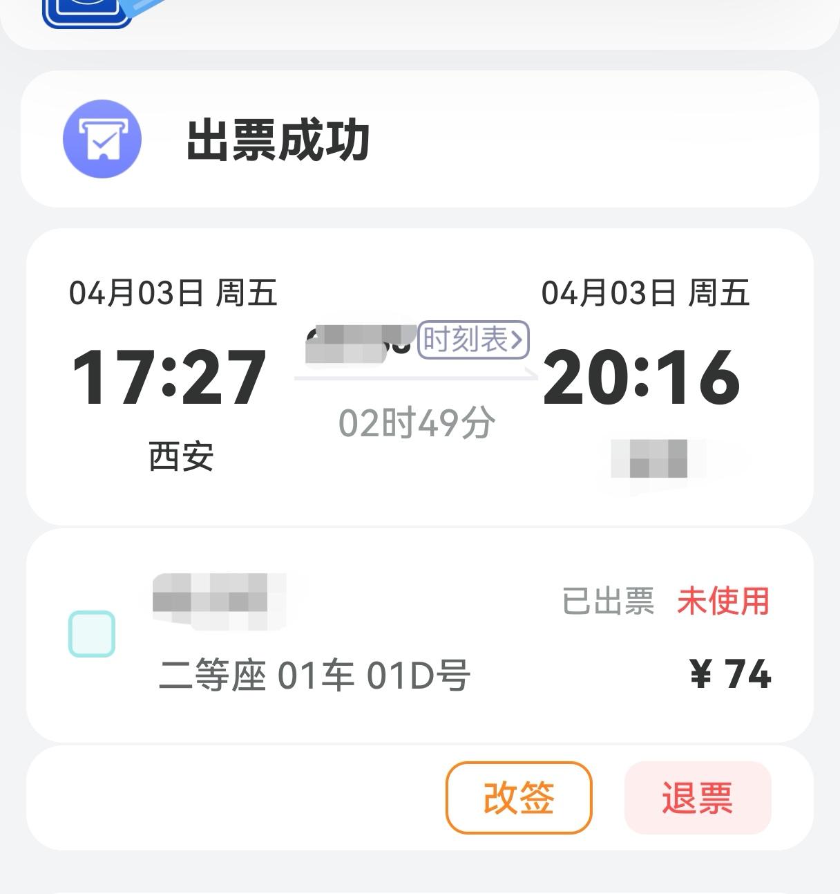 春日生活打卡季还好,赶在还有1张二等座余票的时候,果断下单,抢到了!居然还是1车型1D做,不只是别人退的票还是剩下的票。回家回家……[锦鲤到来][兔年大吉]