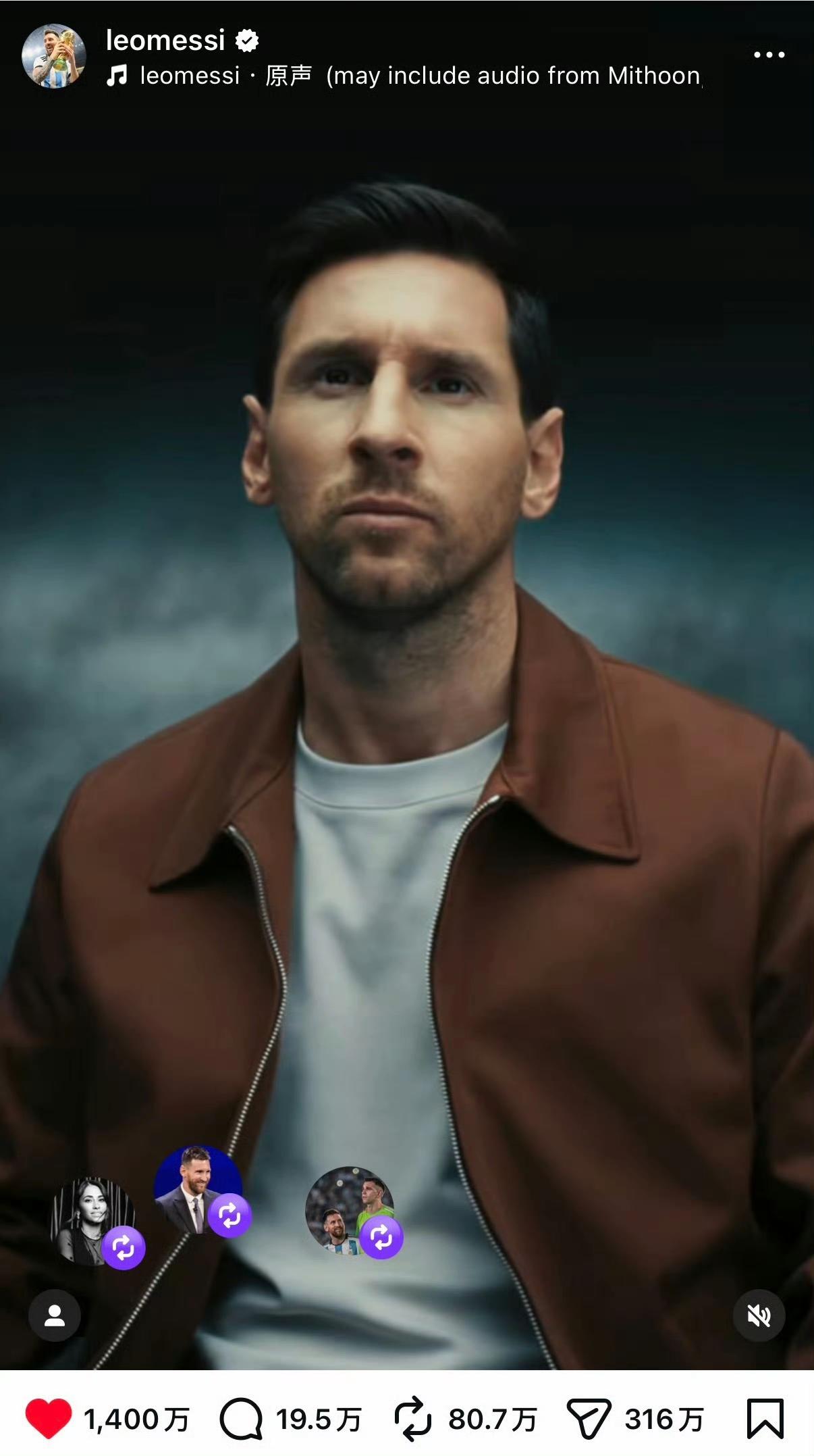 2022年世界杯前, LV推出两人主角的广告,说梅罗绝代双骄。2022年世界杯结束, LV推出梅西一人主角的广告,说梅西独领风骚。