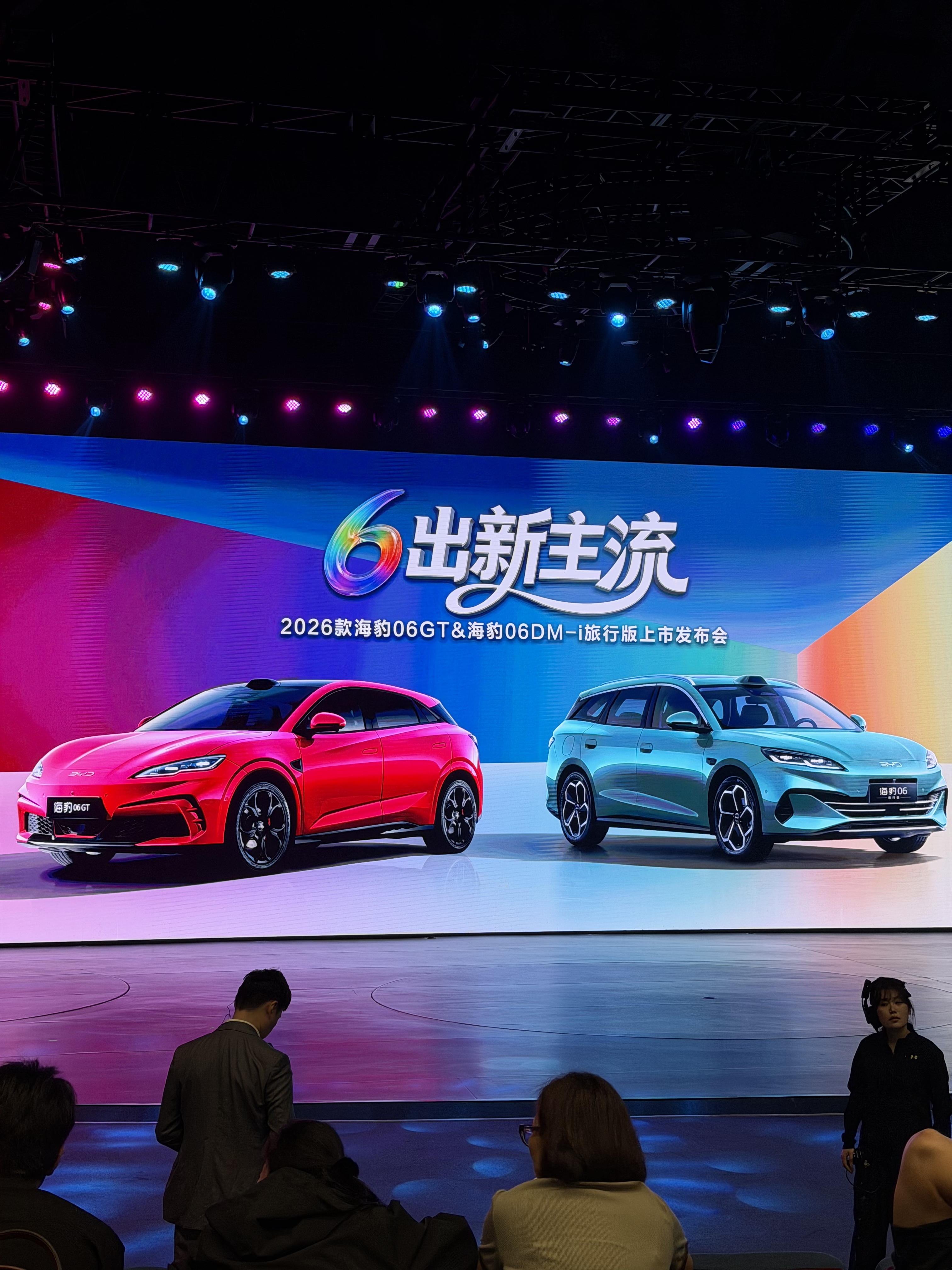 来参加2026款海豹06GT和海豹06DM-i旅行版上市发布会了,两款车型价格已公布,海豹06GT12.89万起,纯电两厢GT超适合年轻人,超120项全系标配很实在,搭载第二代刀片电池和闪充技术,5分钟充好,9分钟充饱,零下30度充电也只多3分钟,620km续航日常出行完全够用,新出的镜海银、波西娅玫红配色颜值也很在线。而且这俩颜色竟然是免费的! 海豹06DM-i旅行版11.19万起,纯电最高300km续航,亏电油耗也低,极汐绿新色很有质感,大空间配四大情景模式,家庭出行、露营都适配。 两款车各有亮点,不管是自己开还是全家出行都挺合适的~