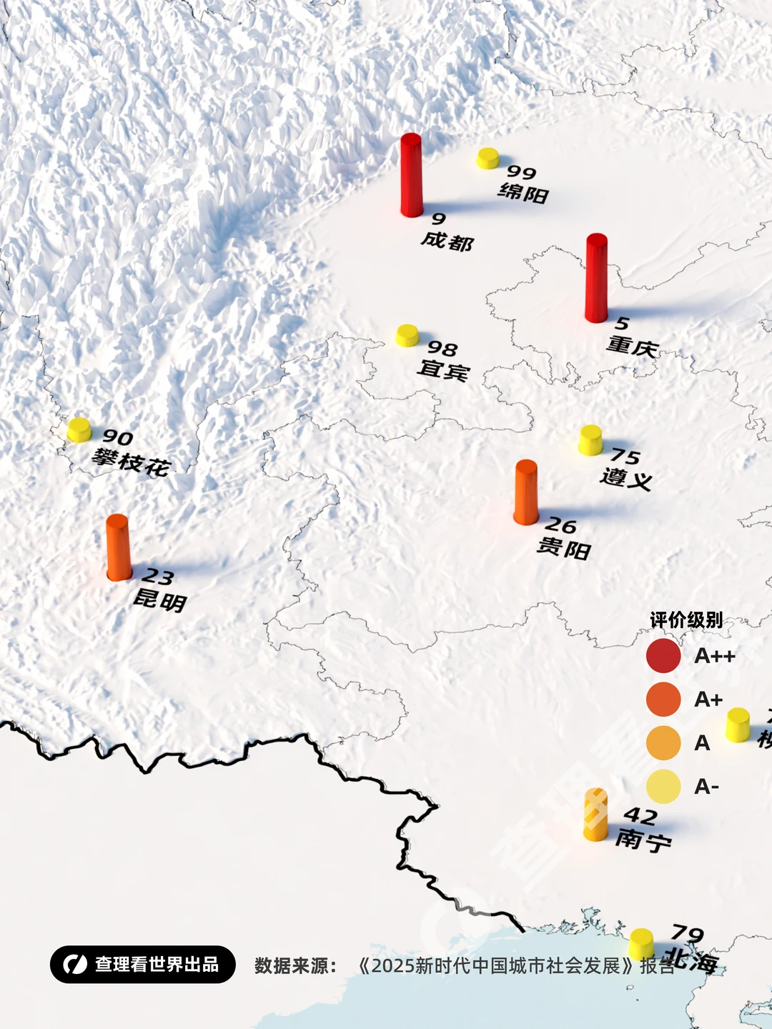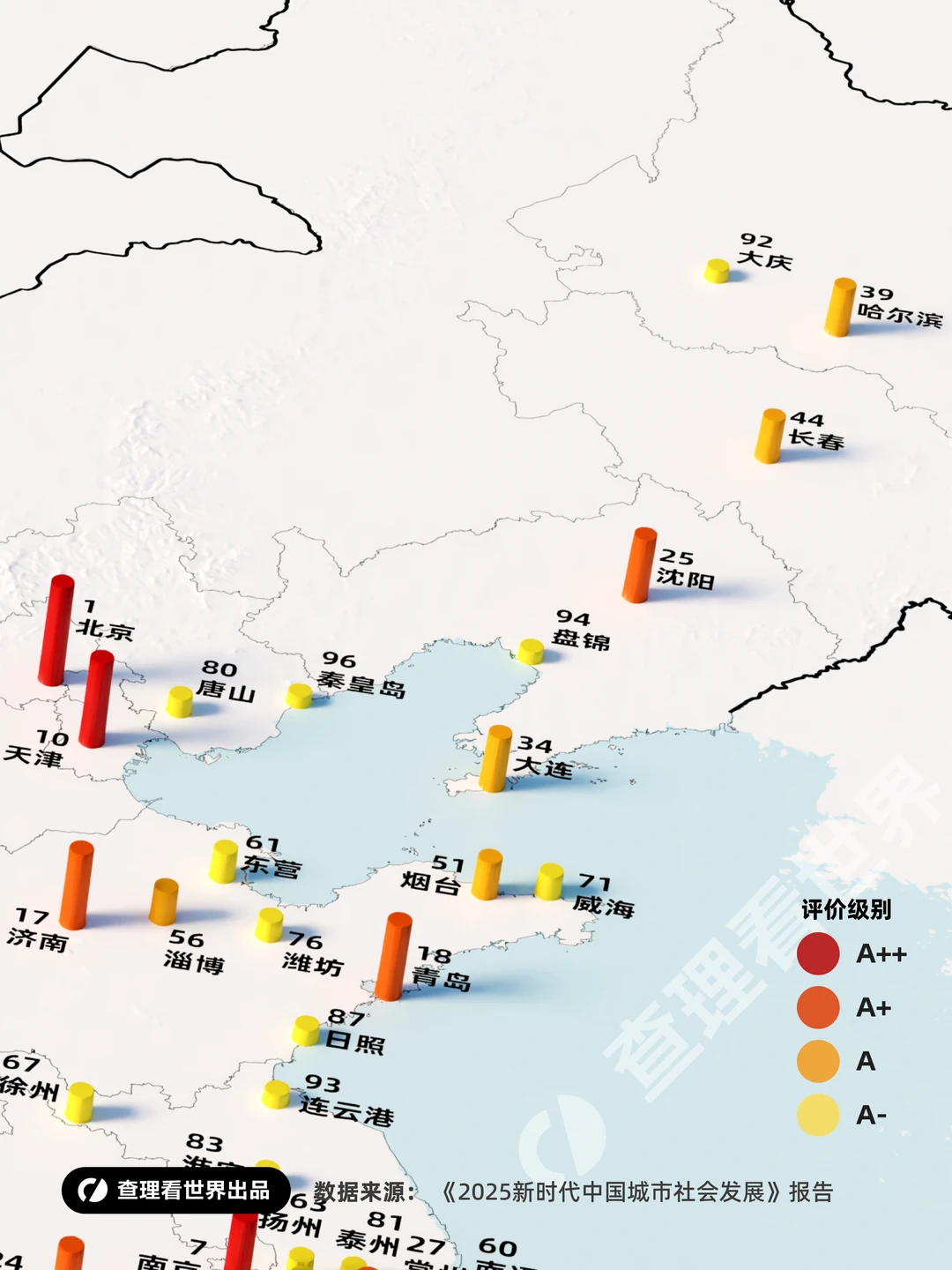 在这份2025年的百强榜中,我们清晰地看到中国城市竞争的逻辑发生了底层巨变。曾经,GDP是衡量城市地位的唯一金标准;而现在,以北京(No.1, A++)、西安(No.11, A+)等为代表的城市霸榜,揭示了一个新趋势:社会发展红利正取代经济规模红利,成为城市吸引力的核心。