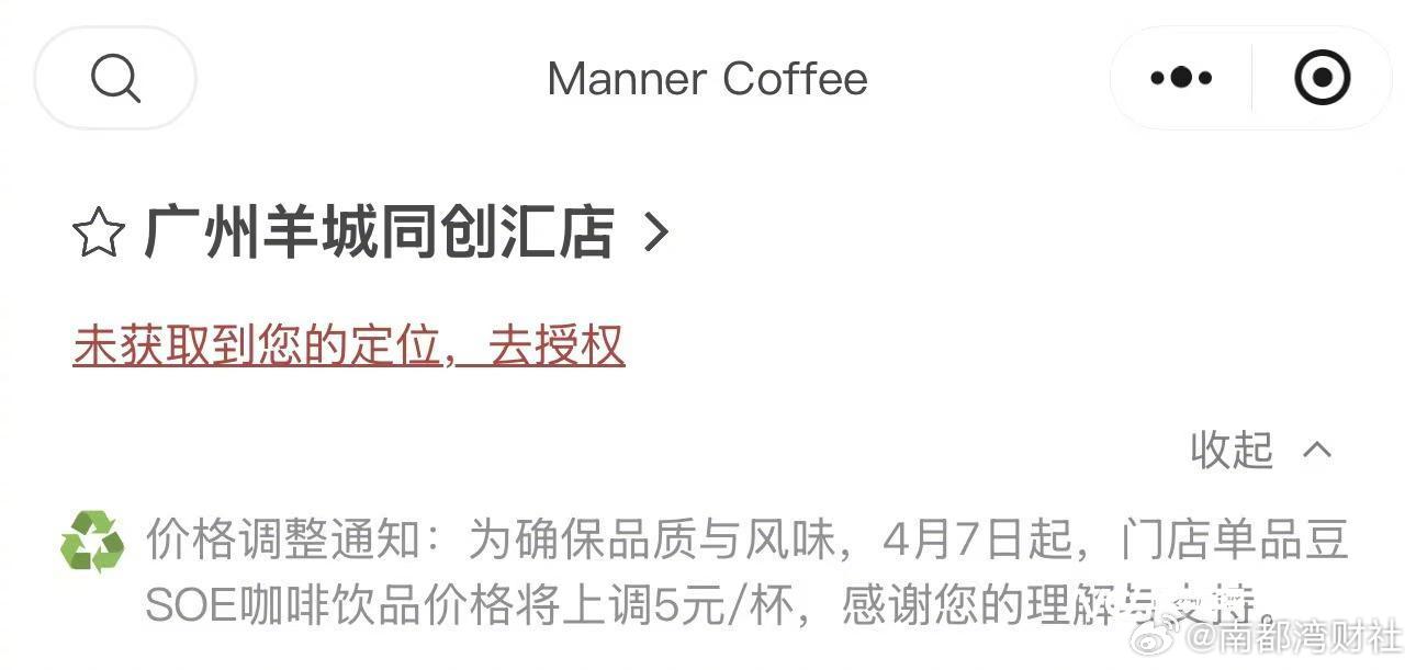 #Manner回应涨价#【多款饮品价格上涨5元,Manner回应】#Manner多款饮品价格上涨5元# 4月3日,连锁咖啡品牌Manner在点餐小程序上发布公告称,4月7日起,门店单品豆SOE咖啡饮品价格上调5元/杯,涉及的饮品共计4款。此外,4月2日,其饮品绿野仙踪也从20元上调至25元。SOE(Single Origin Espresso)咖啡指的是用单一产地、单一庄园的咖啡豆做的咖啡,而Manner以及多数连锁咖啡的主力咖啡产品通常用的是意式拼配豆。4月3日,Manner相关负责人回应南都湾财社记者称,门店单品豆SOE咖啡饮品涨价属实,其他产品价格不变。SOE单品豆咖啡饮品调价核心原因是将选用品质更优的咖啡豆,为消费者提供更出色的风味体验。而绿野仙踪也是因为产品升级。同时,Manner全国所有门店一直以来的"自带杯减5元优惠"不变。Manner于2015年在上海创立,定位为精品咖啡,品牌隶属于上海茵赫实业有限公司。其主打产品有拿铁咖啡、意式咖啡和浓缩咖啡,其饮品价格在15-25元。根据窄门餐眼,截至2026年3月14日,Manner在全国拥有2483家直营门店。