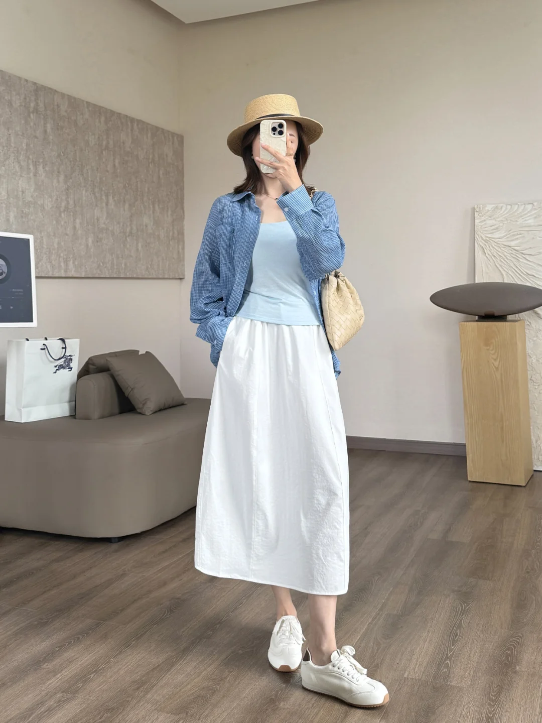 蓝色衬衫+卡其半裙 这样穿回头率直接拉满~