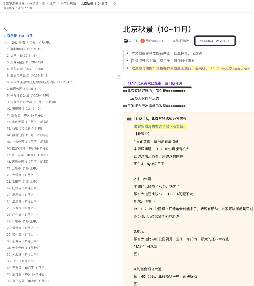 去年赏秋,我们也是跟踪了一个半月,有25个群,文档有1.3万人阅读