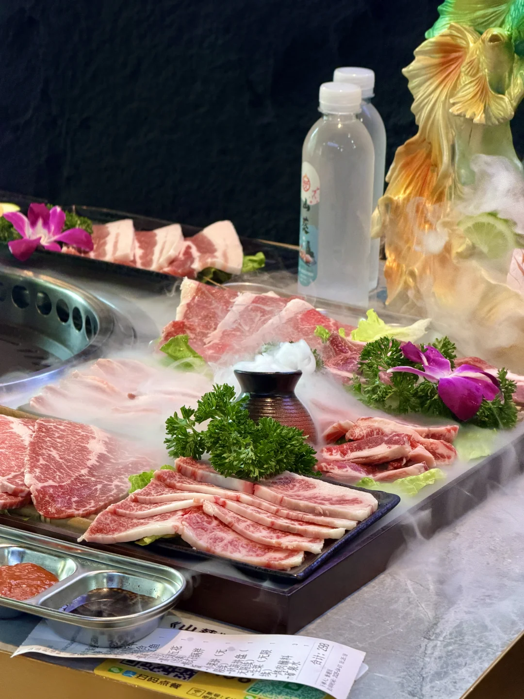 还有猪五花、烤土豆片、红薯片都超绝,西葫芦也很nice👍小甜品一开始还误以为是牛肉超像的哈哈!!