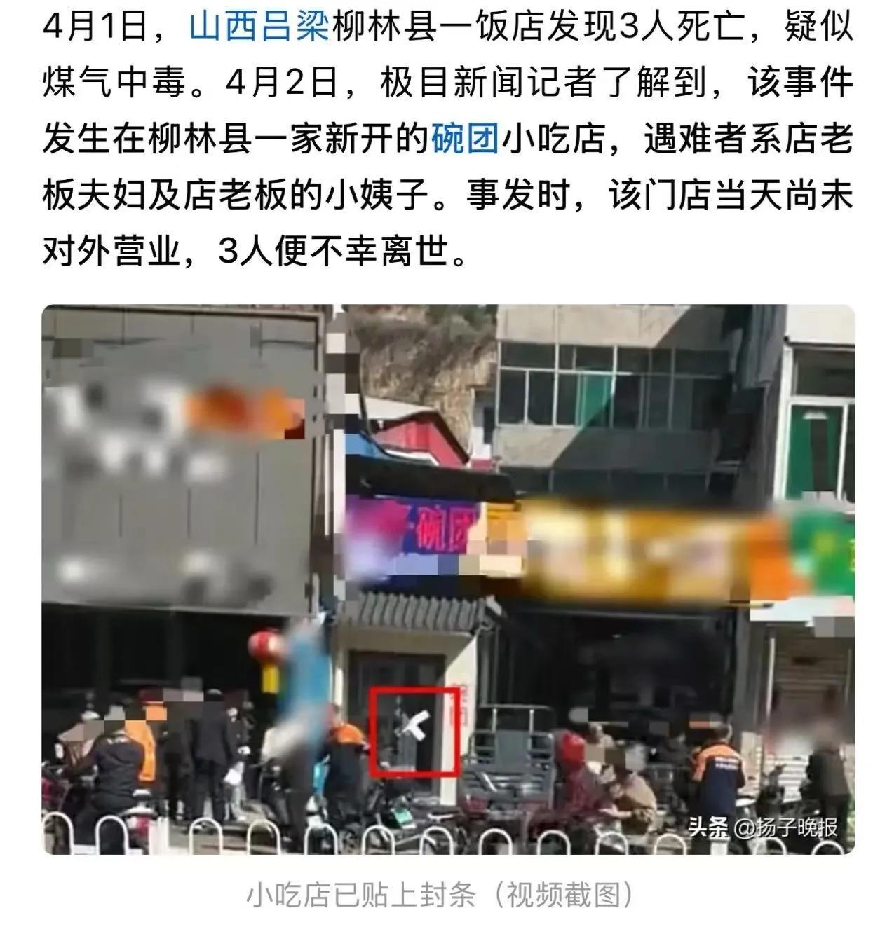 “三个人,在店里,全没了”:山西小吃店凌晨命案,一个细节让人后背发凉 一、天还没亮,路人往店里瞅了一眼,吓得赶紧报警 4月1日凌晨5点15分,山西柳林县的贺昌大街上,天刚蒙蒙亮。 一个路人经过一家叫“燕子碗团店”的新店,习惯性地往里瞅了一眼——这一瞅,腿都软了。 玻璃窗里头,地上躺着三个人,一动不动。 路人赶紧打了110和120。警察冲进去,一股浓烈的煤气味扑面而来,呛得人直咳嗽。 可惜,急救人员赶到时,三个人已经没了呼吸。 时间是5点39分。三条命,就这么没了。 二、店主夫妻加小姨子,接手店铺还不到一周 这店是刚盘下来的。店主是一对夫妻,再加上老板娘的亲妹妹,三个人一起干。 碗团是柳林当地的特色小吃,做起来挺费功夫。得半夜起来和面、洗浆、上锅蒸,赶在天亮之前做好,才能赶上早上那一波生意。 他们接手这家店才没几天,简单收拾了一下,就准备开张了。 出事那天凌晨,他们就是起来加工食材的。本来计划着天亮后搞个“免费试吃”活动,热热闹闹地把店开起来,把生意做起来。 谁也没想到,新店还没迎来第一个客人,三个人就全没了。 三、问题很可能出在罐装煤气上:漏了?没关紧?还是火灭了气没断? 附近商户说,这家店用的是罐装煤气。 现在官方还没公布具体原因,但根据现场情况,大概率是三种可能: · 煤气罐漏气了; · 阀门没关紧; · 或者灶上烧着火,火灭了,煤气还在往外冒。 再加上店里是密闭空间,窗户没开,空气不流通。煤气里的有毒成分——一氧化碳,就在屋里越积越多。 三个人忙活到凌晨,可能累得不行了,稍微有点头晕也没当回事。等到发现不对劲的时候,人已经没力气站起来了,连喊都喊不出来。 没有挣扎,没有呼救,就这么倒在了对未来的憧憬里。 四、法律分析:这事儿不光是人命,还牵扯到好几个法律责任 咱们从法律角度说几句。这起悲剧,表面看是意外,但背后其实牵扯到不少责任问题。 第一,谁该为这三条人命负责? 如果调查出来是煤气罐漏气,那卖气的、送气的、罐子的生产厂家,可能都要担责。 《民法典》第1202条明确规定:因产品存在缺陷造成他人损害的,生产者应当承担侵权责任。 也就是说,如果是煤气罐本身质量有问题,比如阀门不合格、罐体有裂缝,那生产厂家跑不了。如果是送气工违规操作,比如没拧紧、没检查,那送气公司也得负责。 第二,店主自己有没有责任? 说实话,这可能是最让人难受的地方——店主自己可能也有一定责任。 根据《安全生产法》和各地的小餐饮管理规定,使用燃气的场所,必须保持通风,还得安装燃气报警器。 但从现场情况看,这家店明显没做到位。窗户关着,没有通风设备,报警器大概率也没装。 法律上讲,这叫“未尽到合理的安全注意义务”。说白了,就是该做的防护没做。 当然,这不是要怪死者。而是提醒所有人:有些底线,真的不能省。 第三,家属能索赔吗?找谁赔? 如果能查清是煤气罐质量有问题,或者送气公司有过错,那家属可以向生产厂家或送气公司主张赔偿。 赔偿项目包括:死亡赔偿金、丧葬费、被扶养人生活费(如果有老人孩子要养)、精神损害抚慰金等。 但如果是店主自己操作不当,比如阀门没关严,那家属就很难向第三方索赔了。这就是最残酷的地方——人没了,责任还落到了自己头上。 五、网友吵翻了:三个人都闻不到煤气味?也太蹊跷了 这件事在网上引发了很多讨论。 有网友说:“太揪心了!新店还没开张,人就没了,这叫什么命啊?” 也有网友提出疑问:“说实话,很不可思议。如果说一个人煤气中毒死了还说得过去,三个人一起出事,疑点太大了。煤气又不是吸一口就死人,况且三个人都清醒的时候,怎么可能没人闻到味道?” 还有网友分析说:“不能以闻到煤气味就定性为煤气中毒,要彻查。但不管怎么说,操作不当、没有通风,肯定是主要原因。” 更有人直指问题核心:“不要一出事就怪瓶子、怪送气工。很多小店的老板自己安全意识太差,为了省成本不装报警器,为了多放两张桌子把窗户封死。这不叫奋斗,这叫玩命。” 六、结论:别让“奋斗”两个字,成了掩盖疏忽的遮羞布 这起悲剧,说到底,是一个“本可以避免”的悲剧。 如果店里装了燃气报警器,几十块钱的事,能救命。 如果半夜干活时开一扇窗户,通通风,也不至于出事。 如果接手店铺时,有人提醒一句“注意煤气安全”,也许结局就不一样了。 可惜,世上没有如果。 我们常说“明天和意外不知道哪个先来”,但很多意外,其实是可以提前挡住的。 最后问大家一个问题:你身边有没有开小店的亲戚朋友?他们店里装了燃气报警器吗?你知道怎么检查煤气是否漏气吗? 欢迎在评论区说说你的看法,也提醒一下你关心的人——安全这件事,真的一秒钟都不能侥幸。 来源:综合山西柳林县官方通报、极目新闻、封面新闻等媒体报道