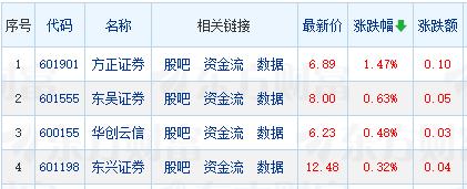 券商股今天仅方正证券、东吴证券、华创云信、东兴证券四小花旦飘红。 这四只小市值券商股能飘红,细究起来还颇有点来头。涨幅第一、二、四的方正证券、东吴证券、东兴证券都是有购并重组题材加身的,涨幅第三的华创云信市净率0.69倍,是券商股中市净率最低的。 的确,购并重组是资本市场的永痕题材和活水源头。是企业强强联合、优势互补、做强做大的好途径。国泰君安与海通证券重组后业绩大幅增长就是最好的例证。