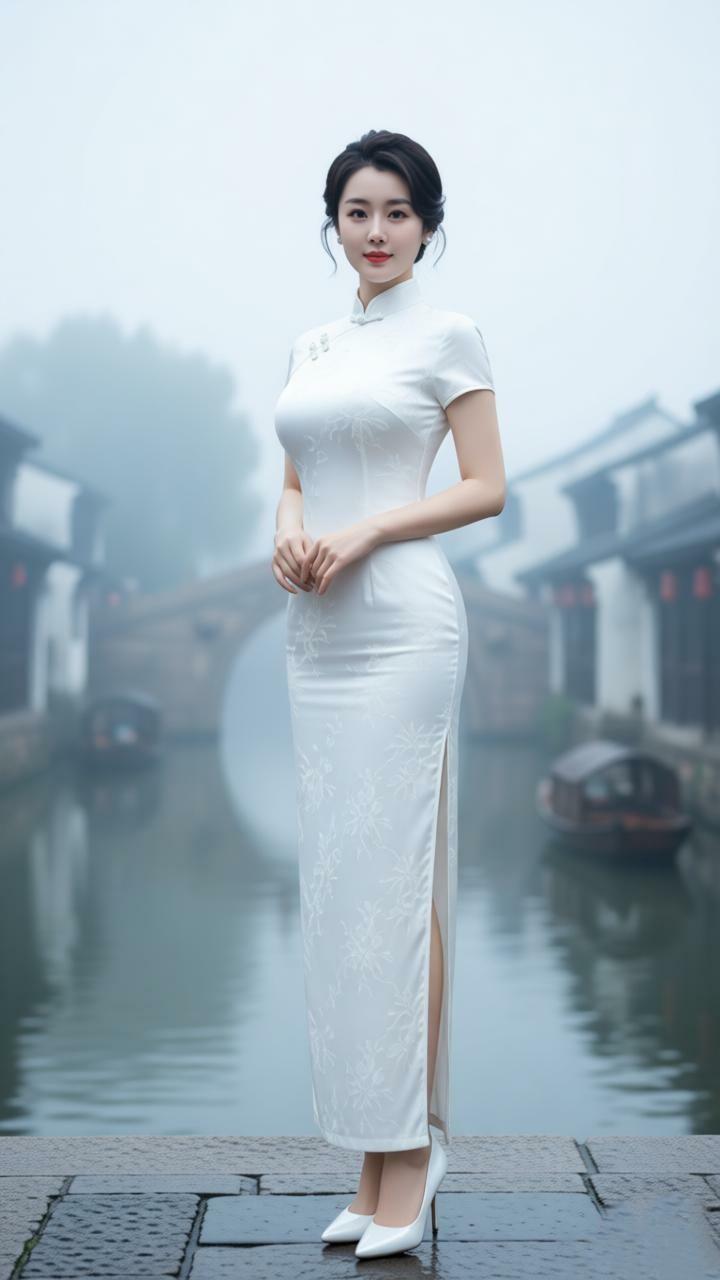 《一襟旗袍,半卷江南》青瓦洇开烟雨色,旗袍一襟裹清欢。盘扣轻绾江南梦,