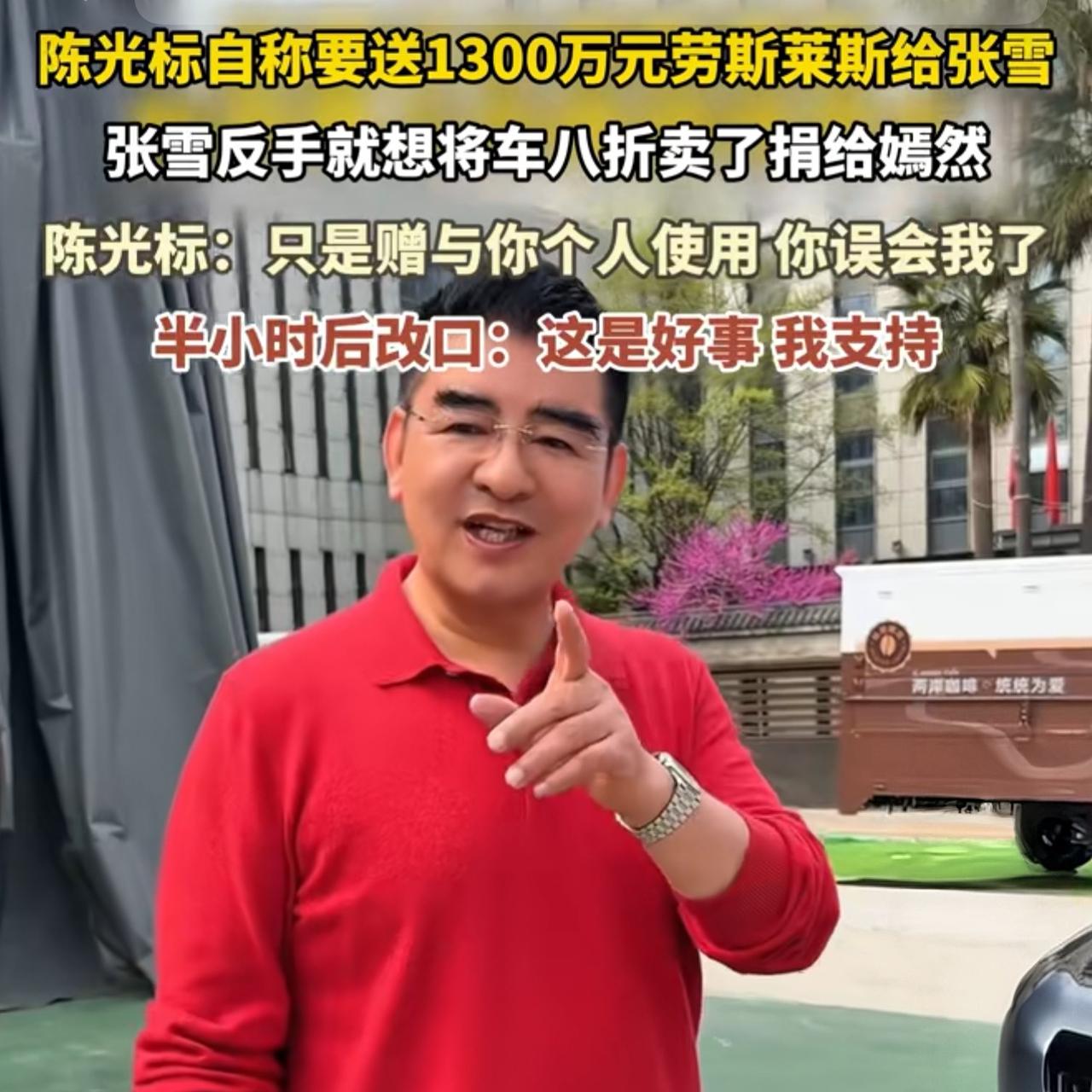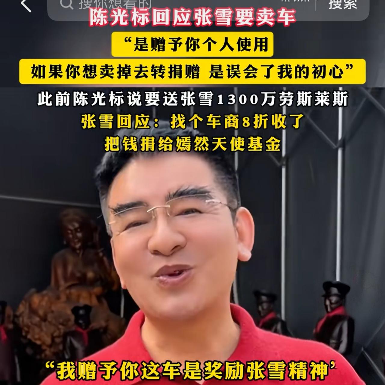 标哥说送张雪劳斯莱斯用于接待,张雪说八折卖了捐给嫣然,李亚鹏说感谢张雪,压力给到标哥,本来想真金白银追张雪热度,结果张雪过于耿直,只给标哥蹭一下。标哥现在送也不是,不送也不是。送吧,1400万直接沉没了,就像说相声包袱没响。不送吧,显得自己没有格局。其实,我建议标哥不送了,而是直接给嫣然打款1400万,捐款人写张雪的名字。也省得张雪八折卖车了,直接给他原价折现,替他捐了。这样张雪会敬佩标哥,李亚鹏也得感谢标哥,两全其美。你觉得呢?