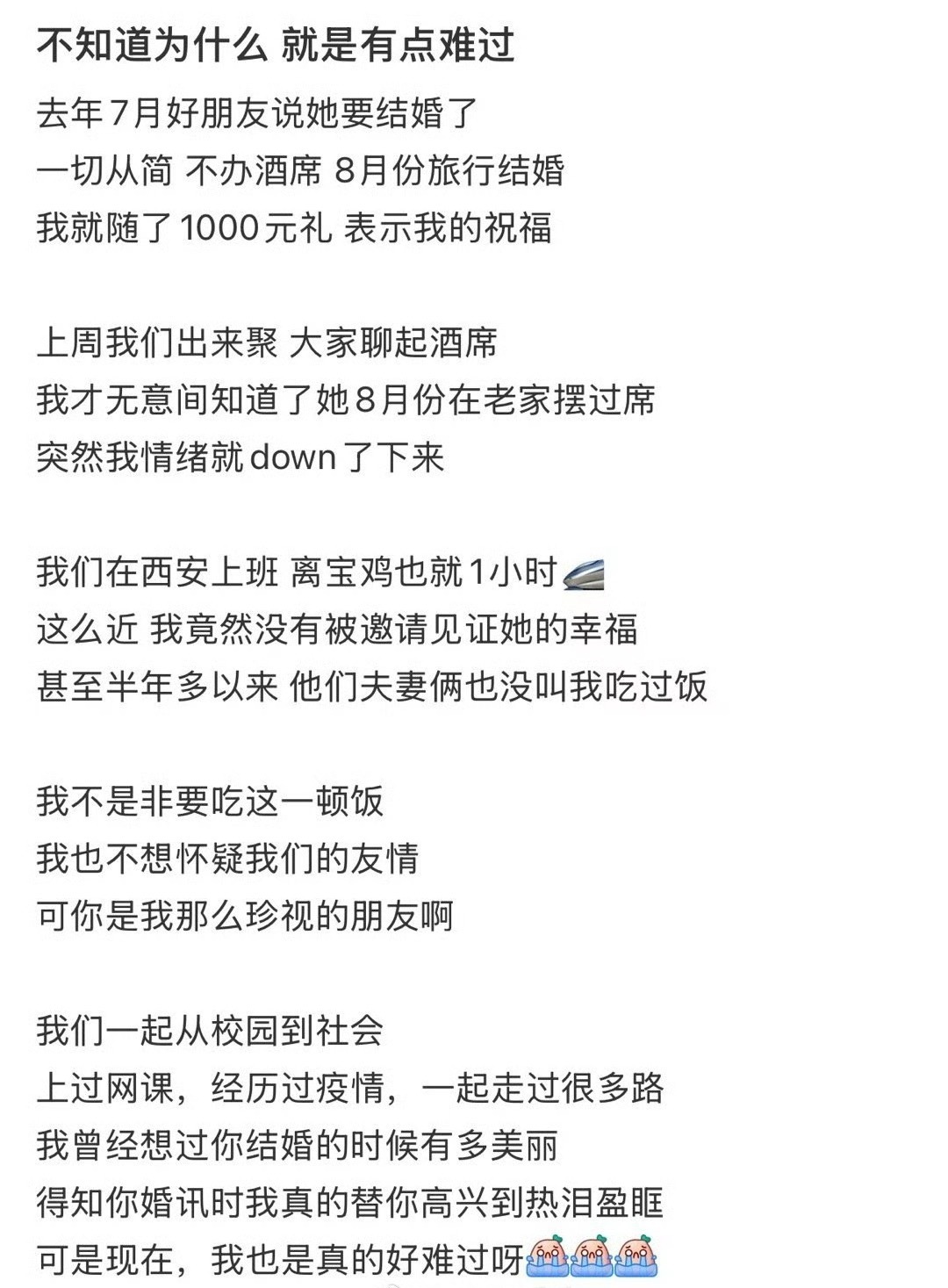 好朋友旅行结婚,我随礼1000,半年后,我才知道她当时摆了酒席,只是没有邀请我